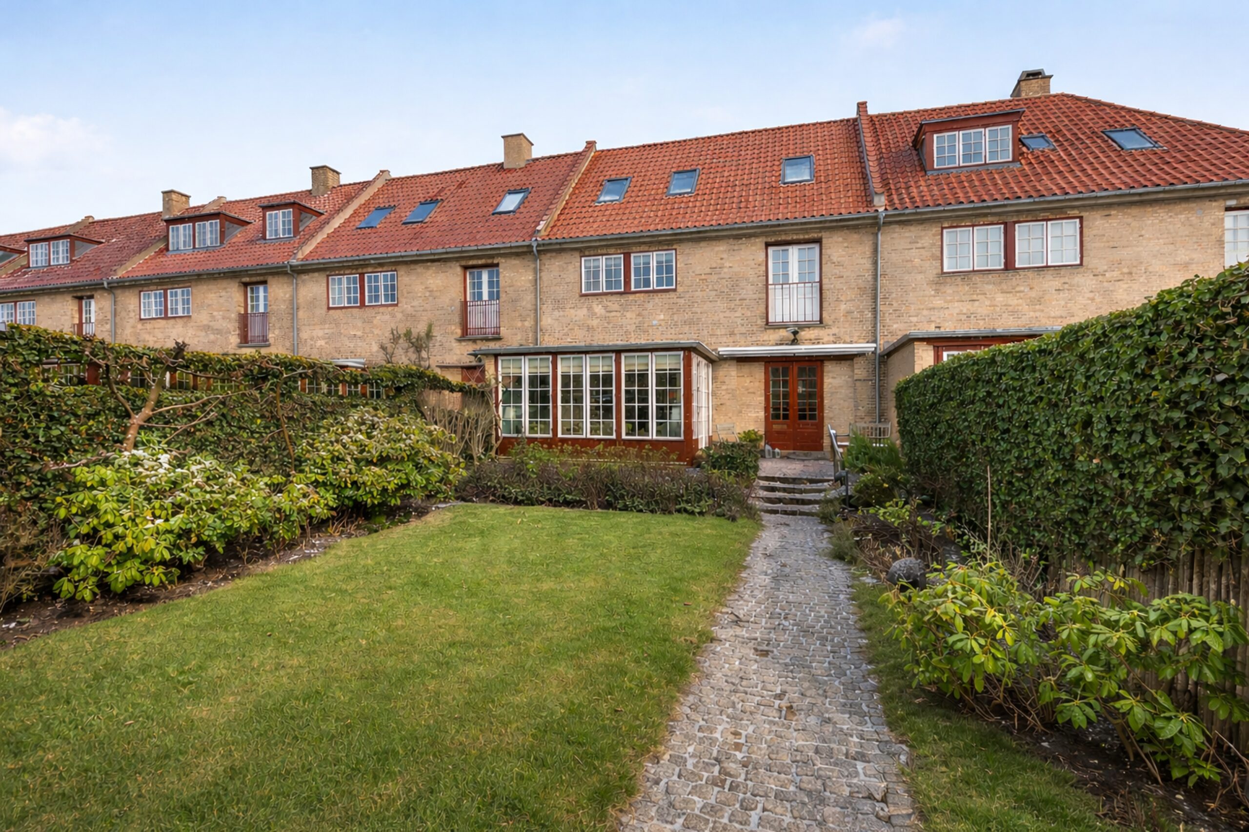 The home contains on the ground floor a hall, living room, dining room, integrated garden room, kitchen with dining area, On the first floor there are 3 good bedrooms with plenty of closet space and a large bathroom. Lots of. On the utilized 2nd floor, which goes all the way up to the kip and the townhouse’s exposed and white-painted beams, there is a lovely room with a good view of the neighborhood and the Øresund at the end of the road. In addition, you will also find a smaller room here that is ideal as a small home office or as storage. In the basement there is plenty of space for a washing machine, etc. The home is rented with white goods.