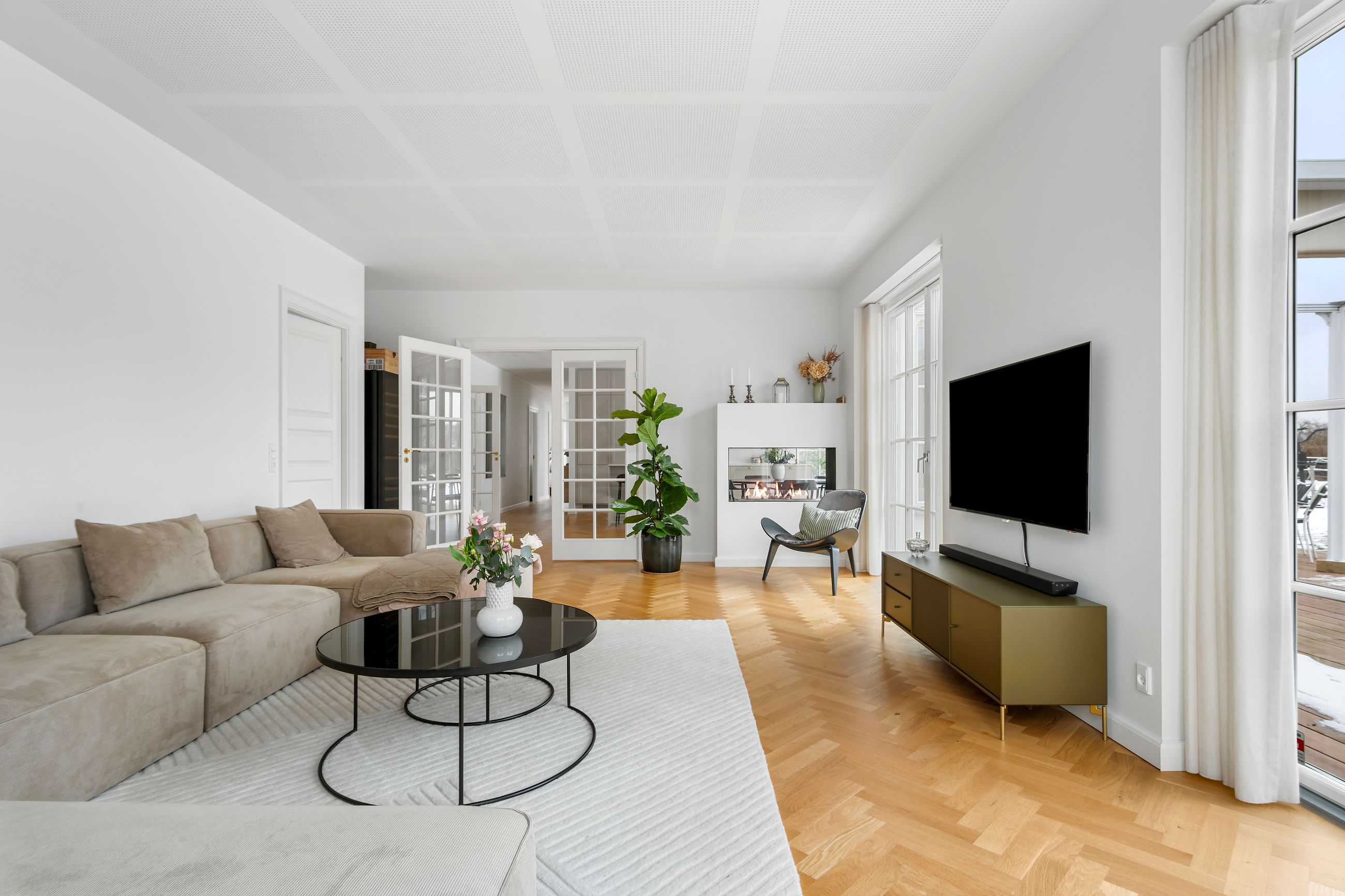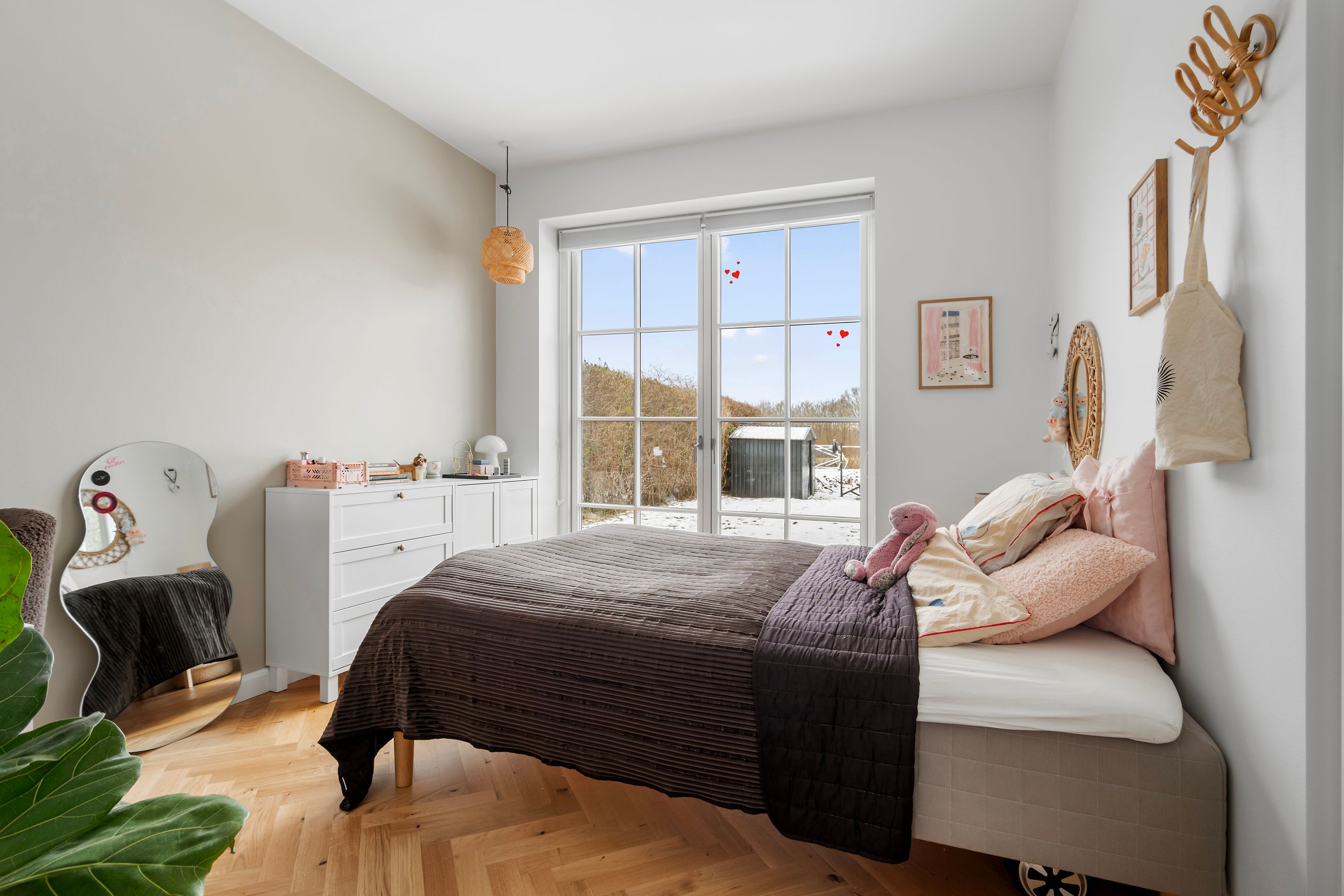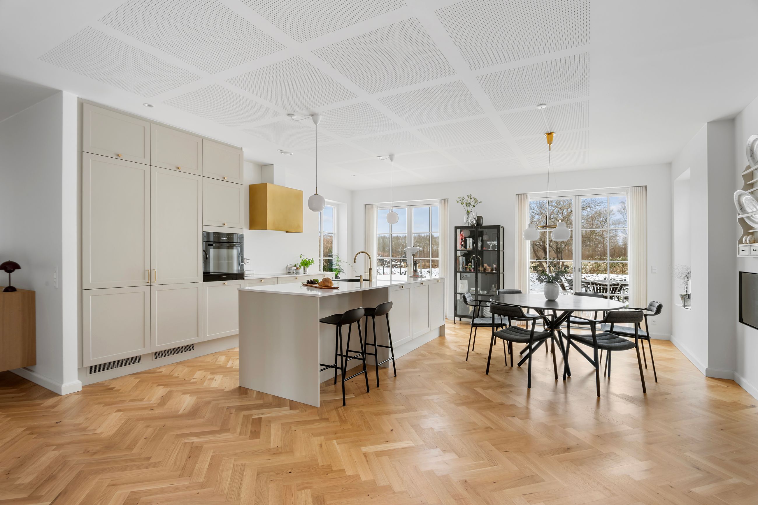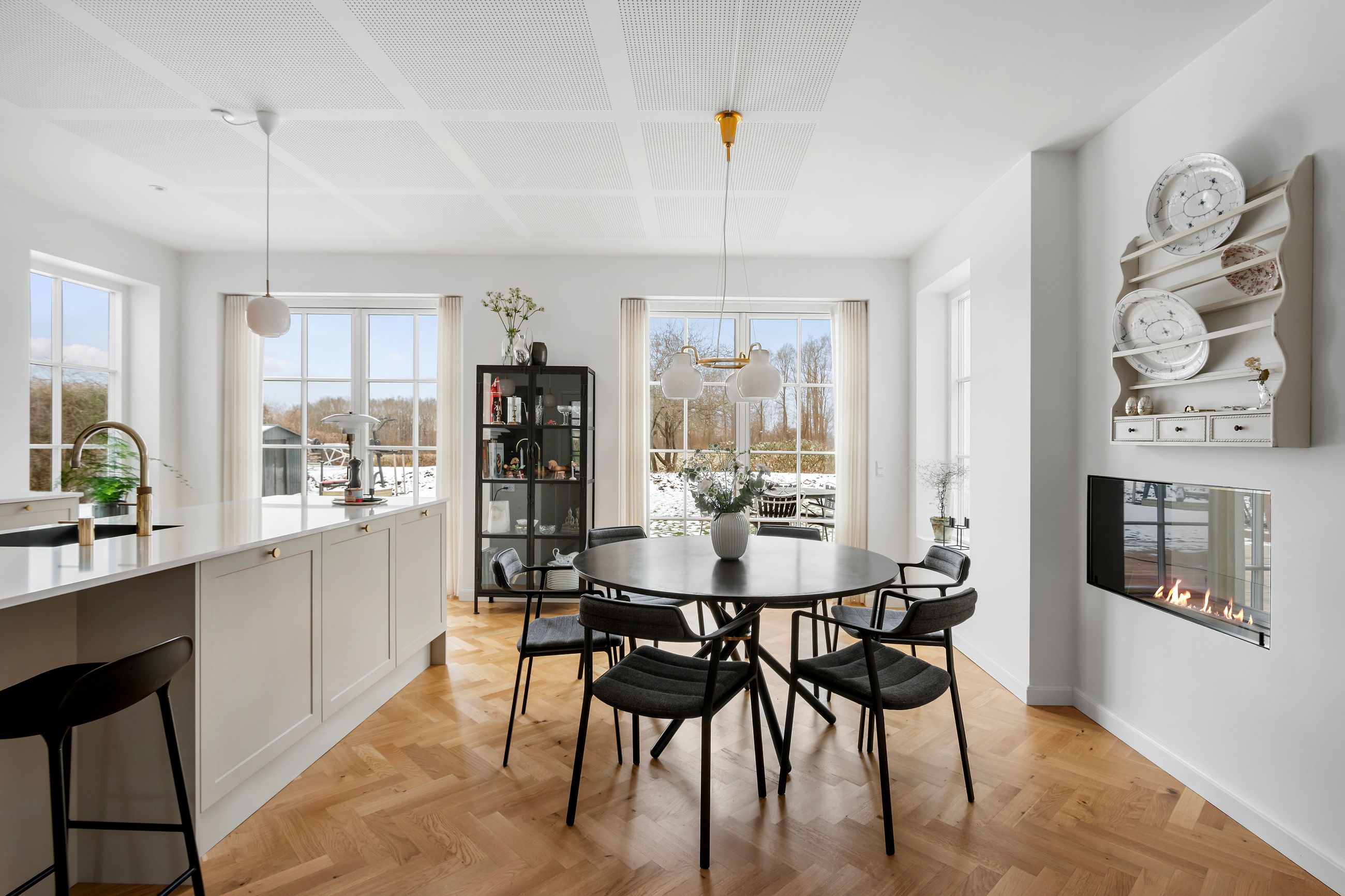 Svaleøvej ligger få hundrede meter fra havnen og badebroen. Det er et nyt hus fra 2023, ikke meget vedligeholdelse her de næste mange, mange år. Det ligger så natursmukt ud til grønne marker og hundeskov, og det er naturen, man skal ville for at flytte ind her. Men huset er altså også værd at tale om, for det er et uforskammet lækkert hus med højt til loftet, masser af lys fra gulv-til-loft-vinduer, masser af plads til dine, mine og vores børn. Alle 192 m2 er i ét plan, farvel trapper, farvel niveauforskelle, farvel til den lille tøven i knæene. Alle er i øjenhøjde.