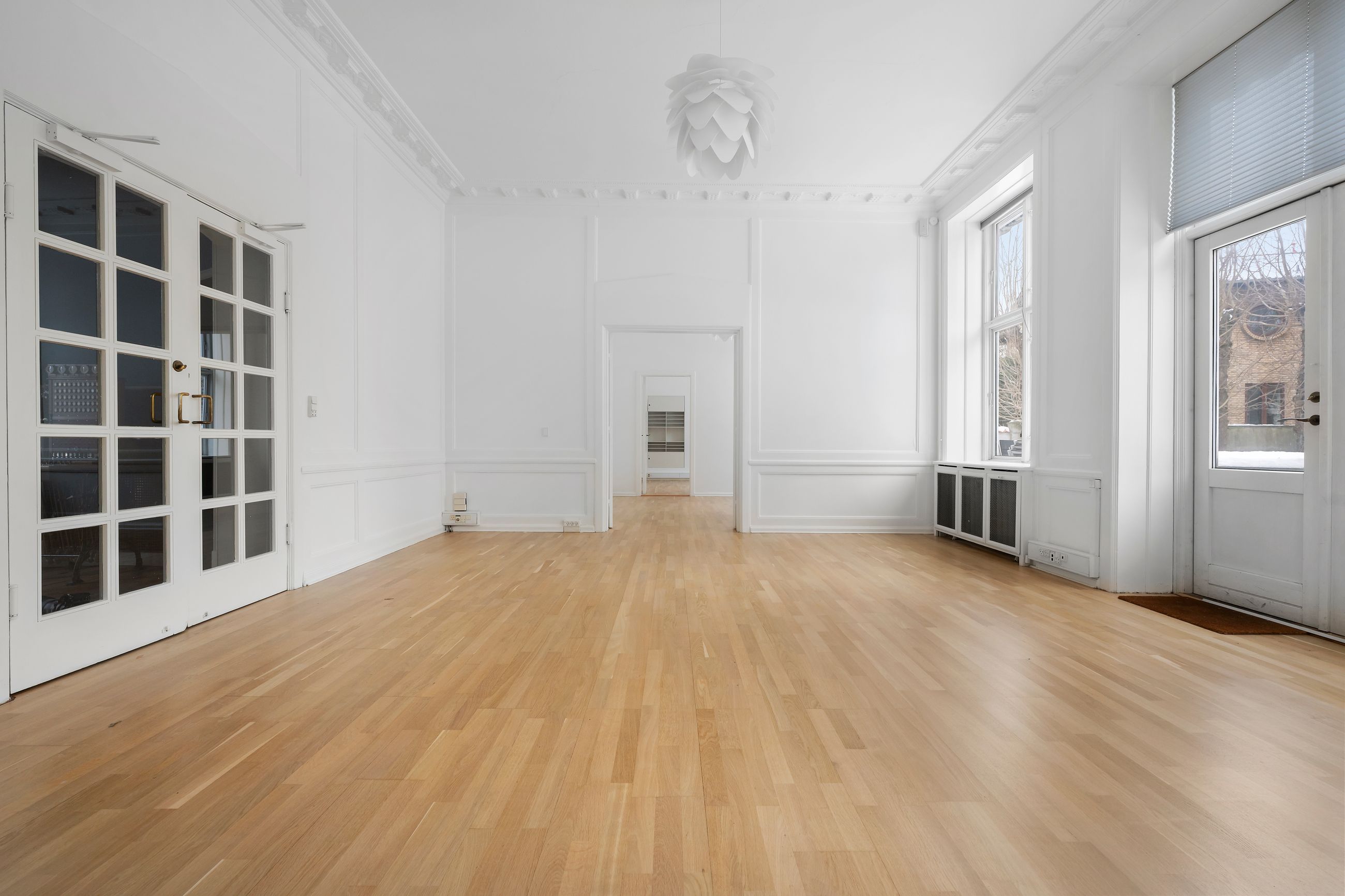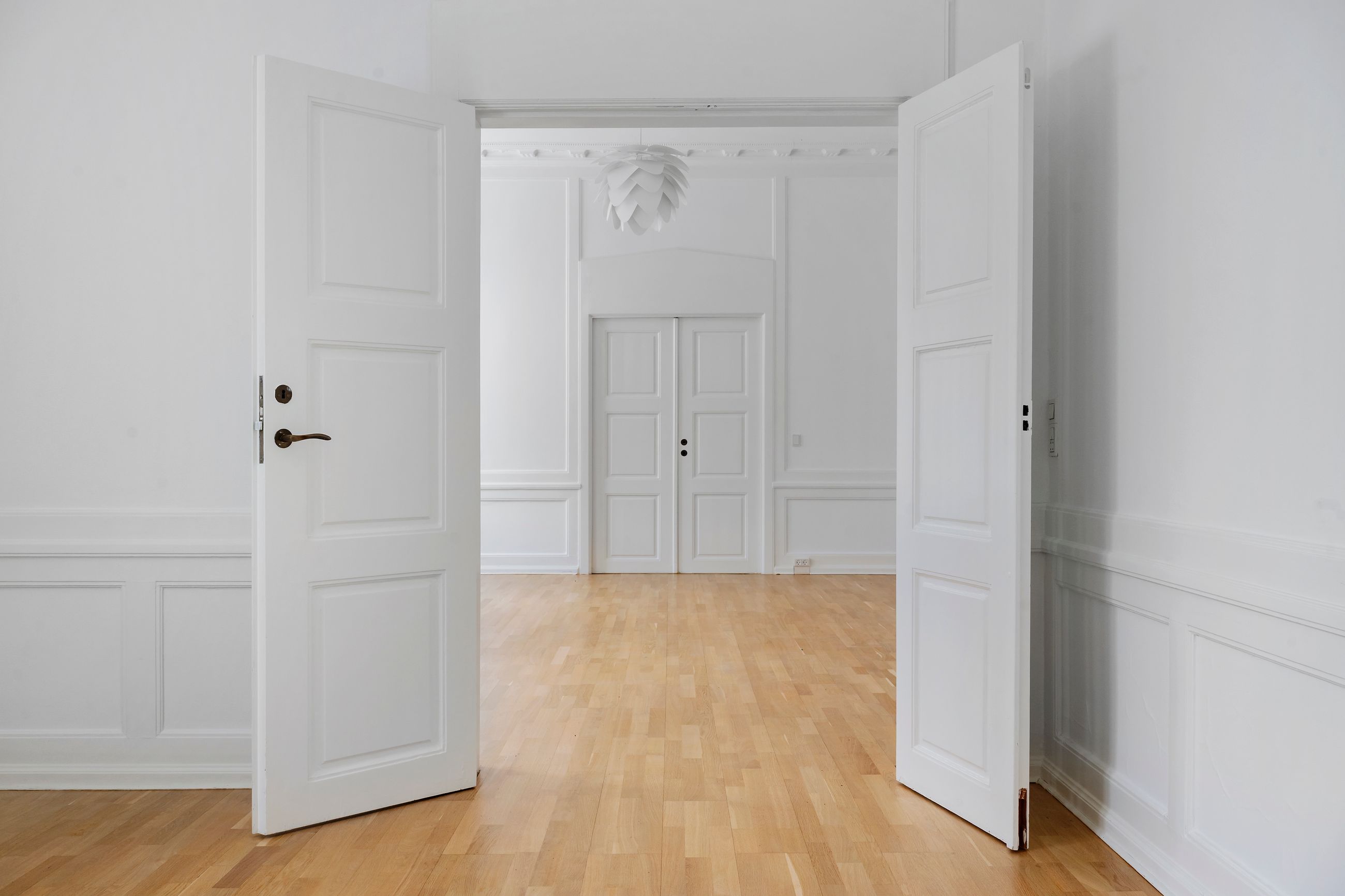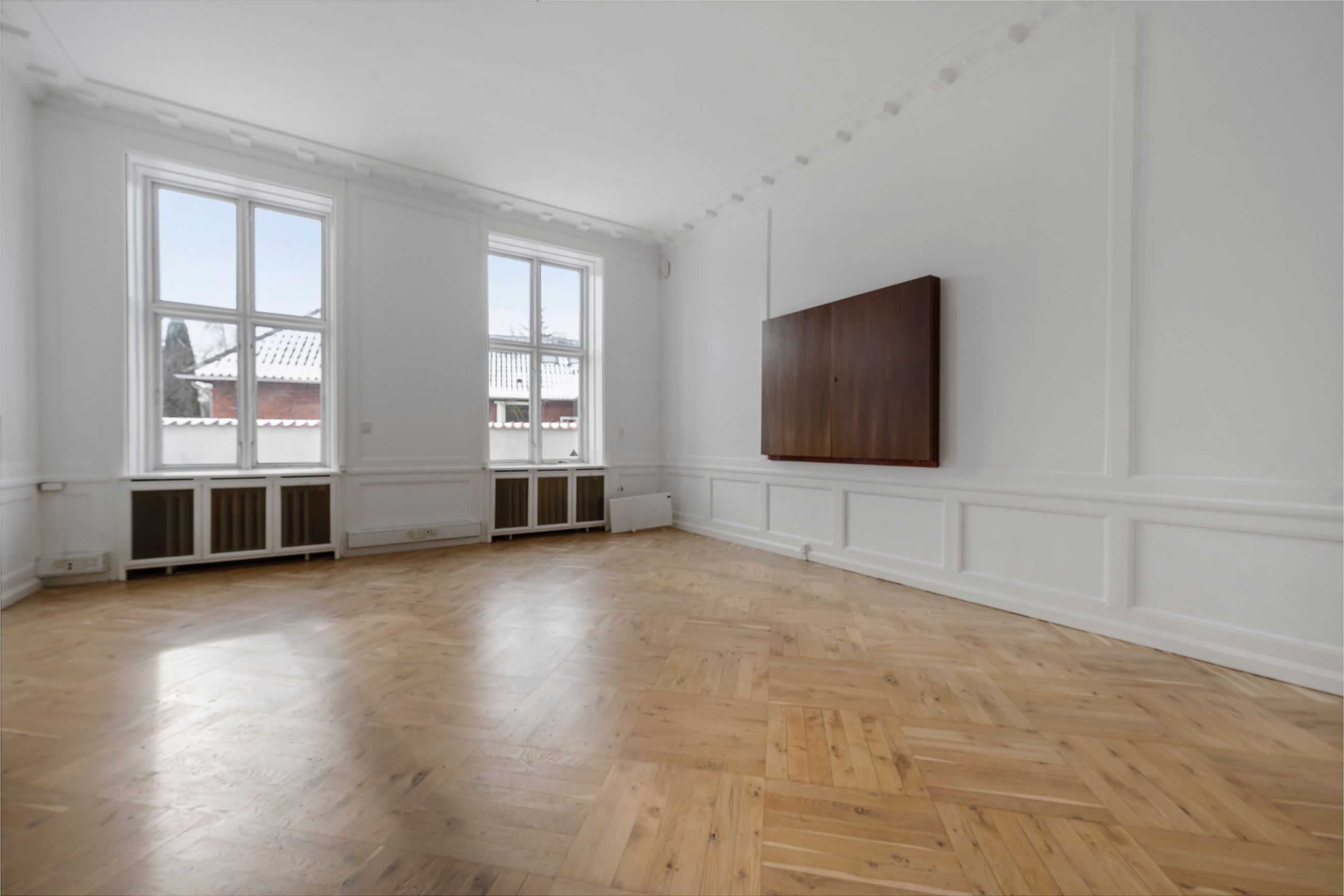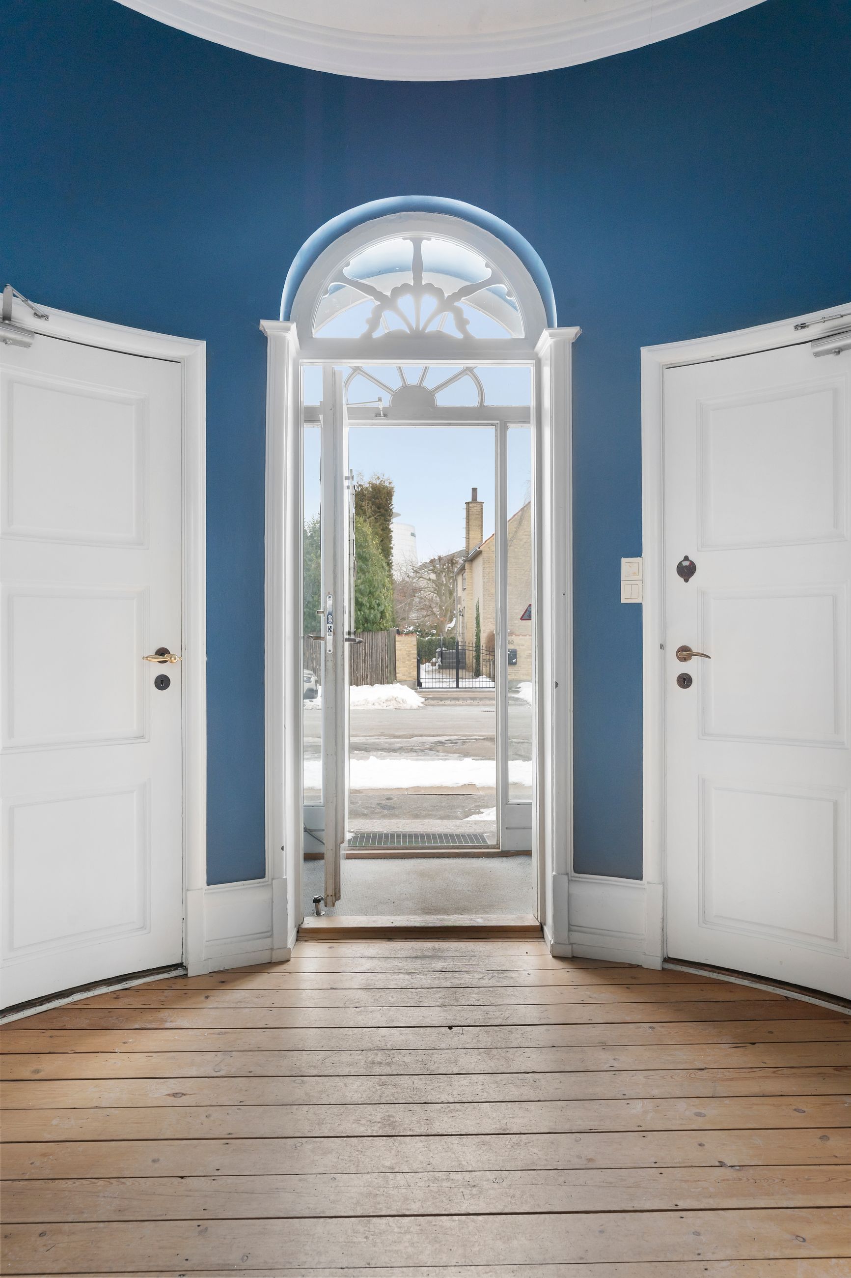 Svanemøllevej 65 er bygget i 1920, altså en lidt ældre dame på 105 år. Tempus fugit, sagde de gamle romere, tiden flygter, siger vi på dansk. Huset har med tiden fået sin ædelrust, sin patina og tidligere har den danske arkitekt Arne Jacobsen har haft tegnestue i ejendommen og har blandet andet sat sit præg herpå, ved egne smukke messing håndtag på dørene. Her er 619 etagemeter, altså masser af plads til den store familie med mine, dine og vores børn. Her er højt til loftet, og det gælder ikke mindst i stueetagen, hvor lofthøjden er enestående høj og udsmykket med smuk stuk. Fra stueetagen er der direkte udgang gennem dobbelte glasdøre til en terrasse og videre ud i den private, lukkede have på hele 1.409 m2.