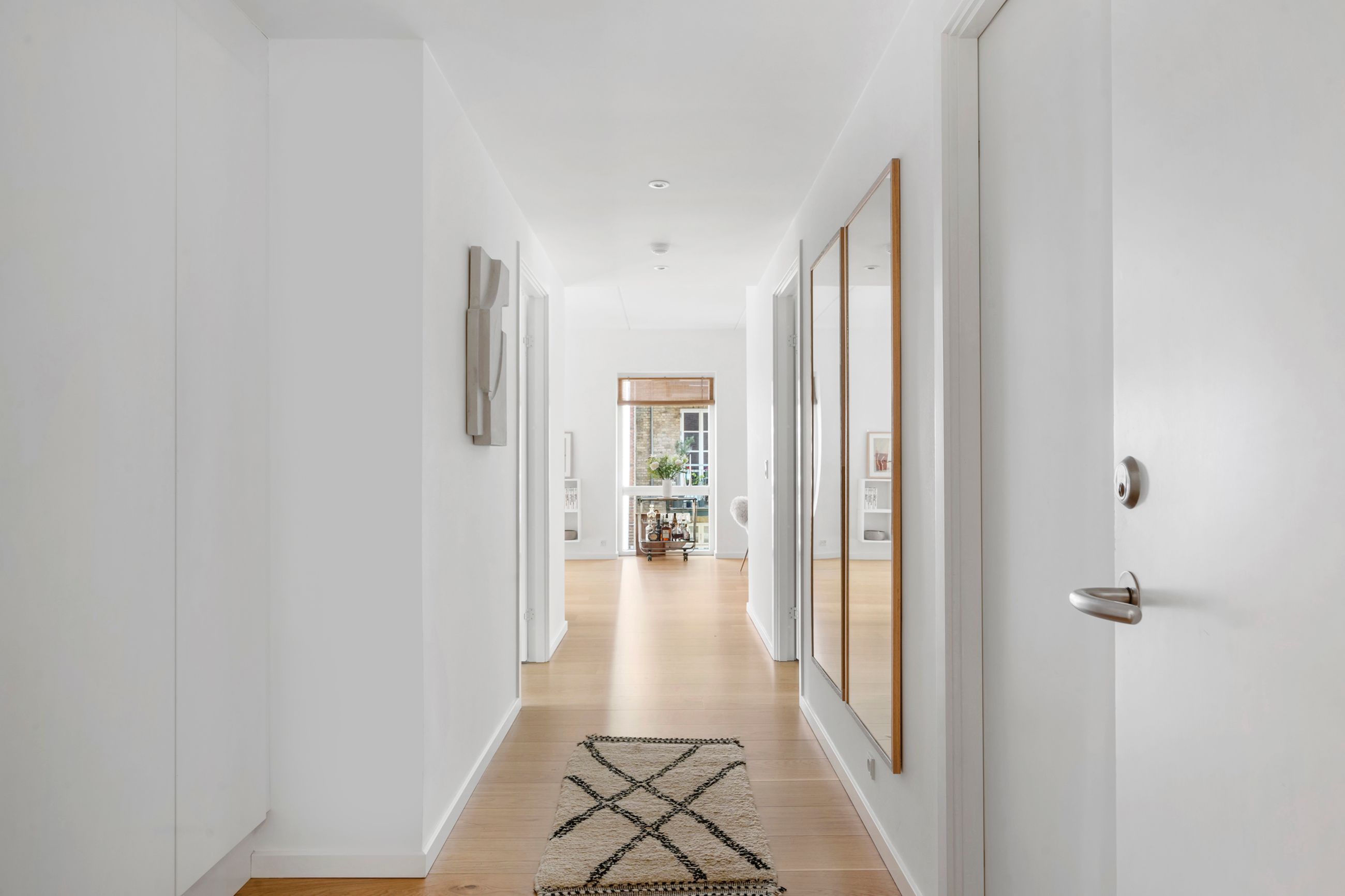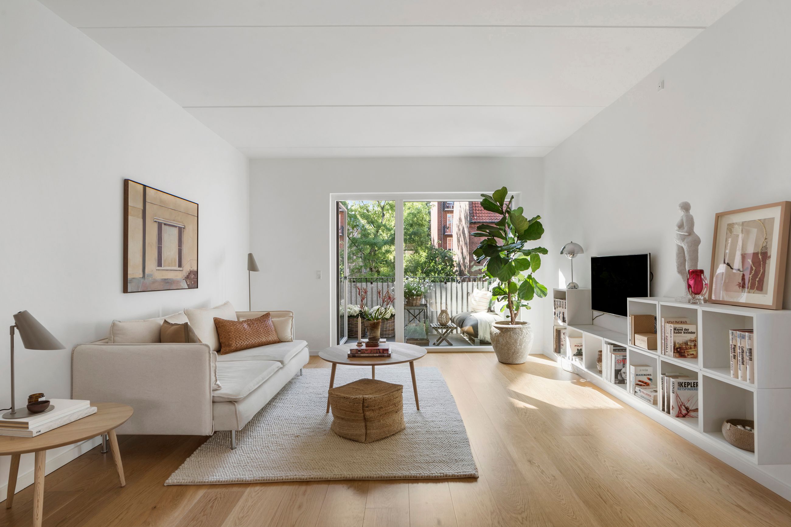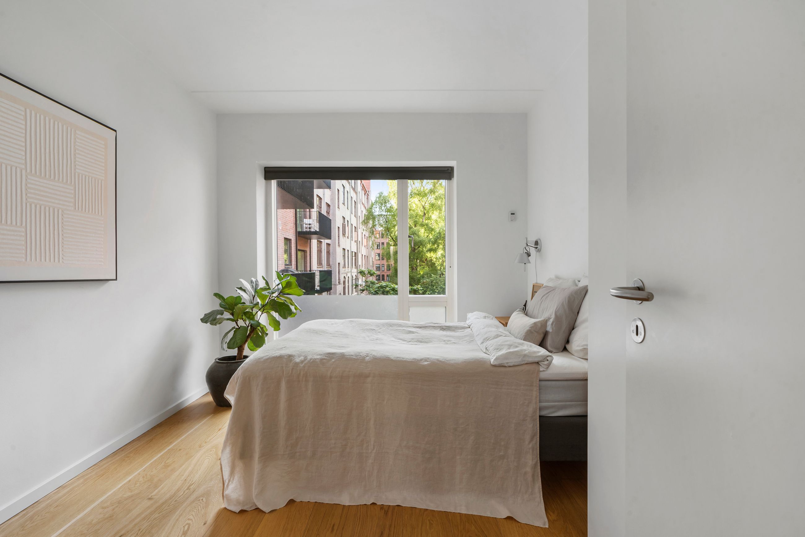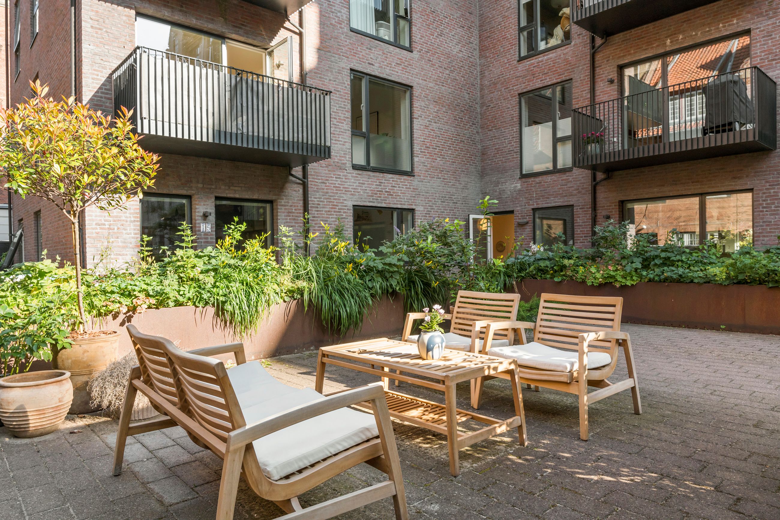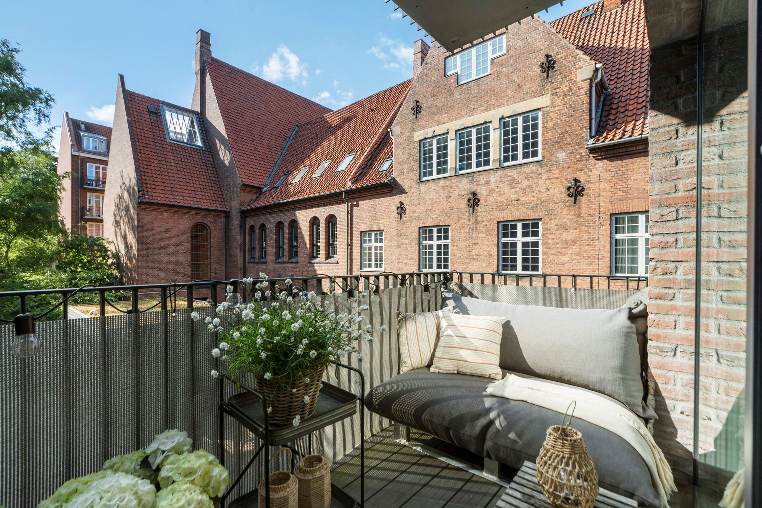 Thurøvej er vejen med ejendomme i den klassiske, røde mursten. Og det gælder også ejendommen Thurøvej 15 fra 2016 med de 18 lejligheder. Respektfuld over for arkitekturen på vejen er den også bygget op af røde mursten. Den glider lige ind, som man siger. Ja, den kunne også være bygget af en arkitekt, som bare havde lyst til at markere sit navn og stikke helt af med beton og glas. Men ikke her. Ejendommen har trods sin unge alder allerede vundet en pris for sine kvaliteter. Mange tak for det. Lejligheden på 1. sal er på 100 m2 med vestvendt altan og sol fra eftermiddag til den går ned. Her er privat parkering i kælderen og elevator til lejligheden. Det er en stor 3-værelses lejlighed og ideel til den enlige eller den lille familie, men den er bestemt også til kæresteriet eller det modne par. Alt er lige til at flytte ind i med indkøb og 2 metrostationer lige om hjørnet. Det er en lejlighed med masser af lys og udsigt til grønne træer.