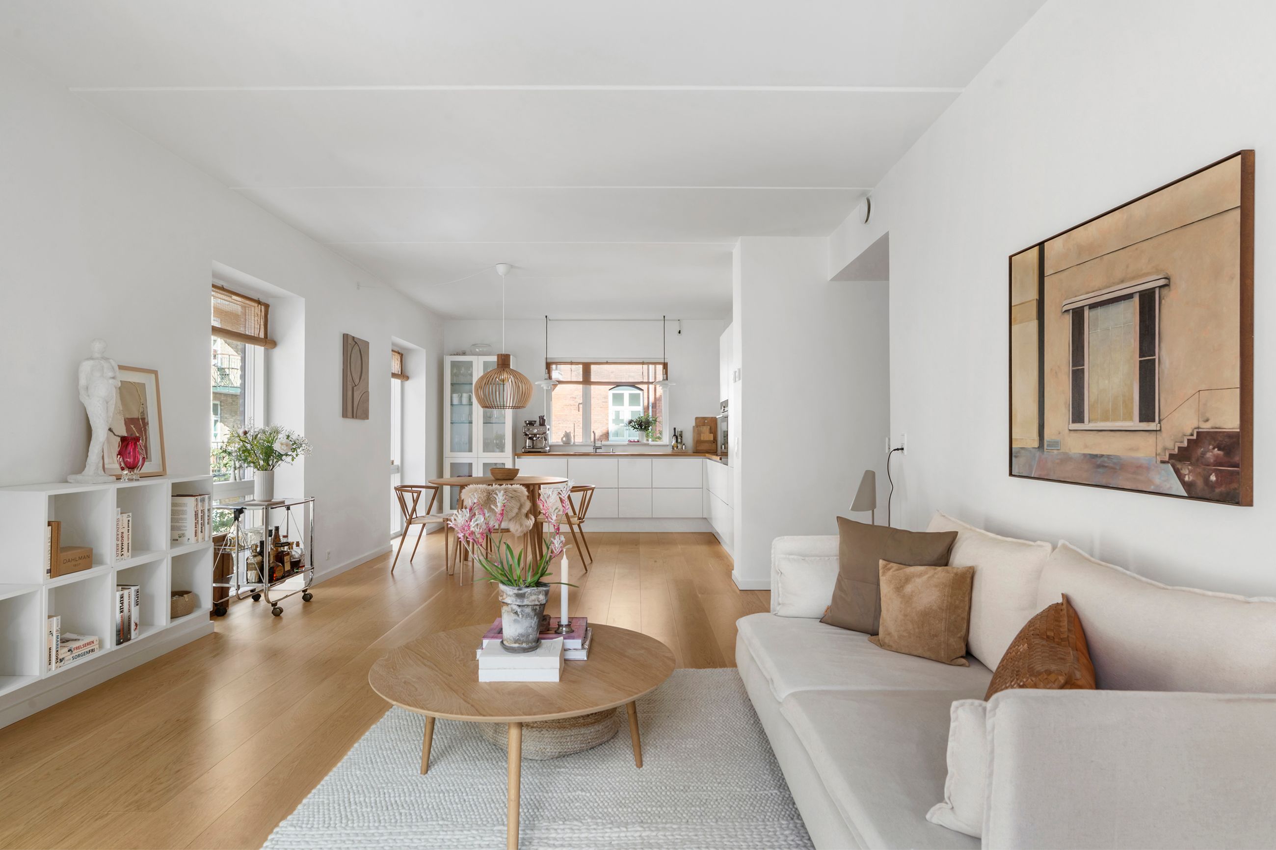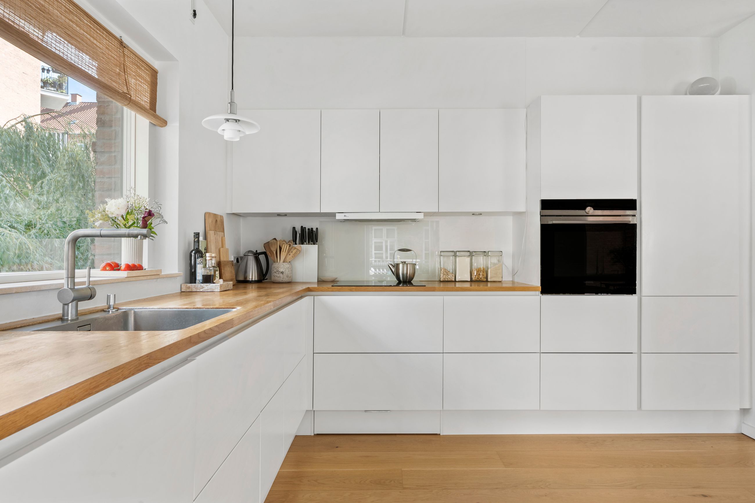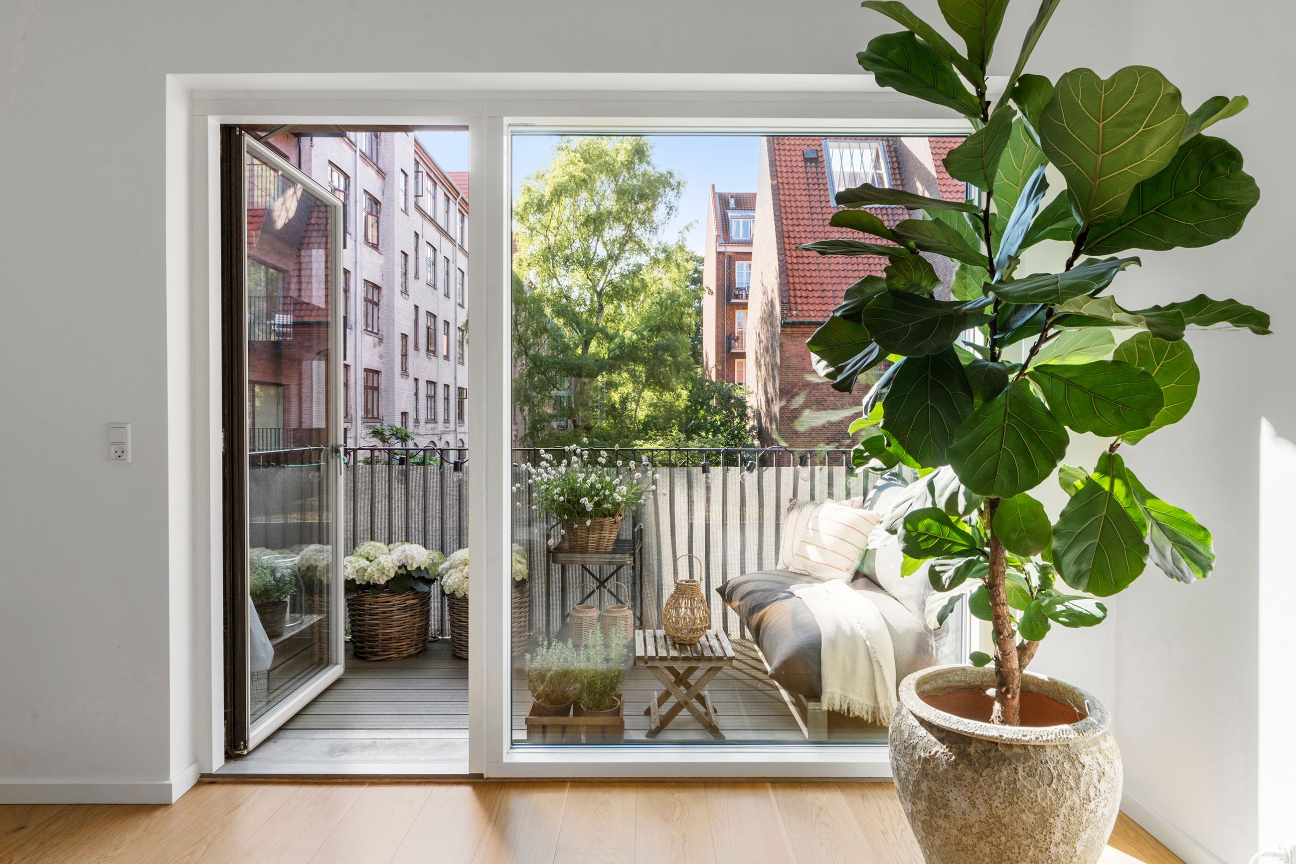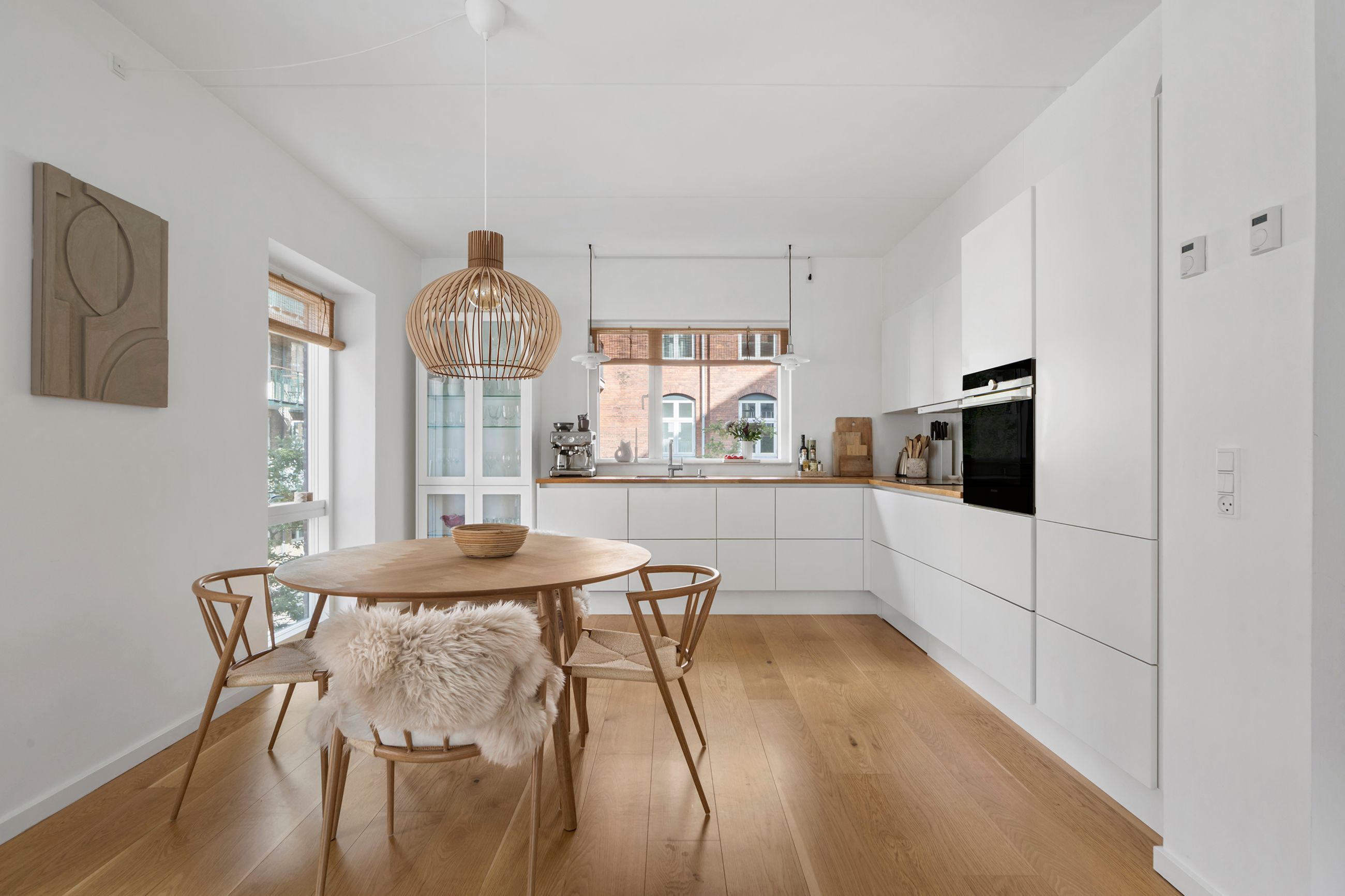 Thurøvej er vejen med ejendomme i den klassiske, røde mursten. Og det gælder også ejendommen Thurøvej 15 fra 2016 med de 18 lejligheder. Respektfuld over for arkitekturen på vejen er den også bygget op af røde mursten. Den glider lige ind, som man siger. Ja, den kunne også være bygget af en arkitekt, som bare havde lyst til at markere sit navn og stikke helt af med beton og glas. Men ikke her. Ejendommen har trods sin unge alder allerede vundet en pris for sine kvaliteter. Mange tak for det. Lejligheden på 1. sal er på 100 m2 med vestvendt altan og sol fra eftermiddag til den går ned. Her er privat parkering i kælderen og elevator til lejligheden. Det er en stor 3-værelses lejlighed og ideel til den enlige eller den lille familie, men den er bestemt også til kæresteriet eller det modne par. Alt er lige til at flytte ind i med indkøb og 2 metrostationer lige om hjørnet. Det er en lejlighed med masser af lys og udsigt til grønne træer.