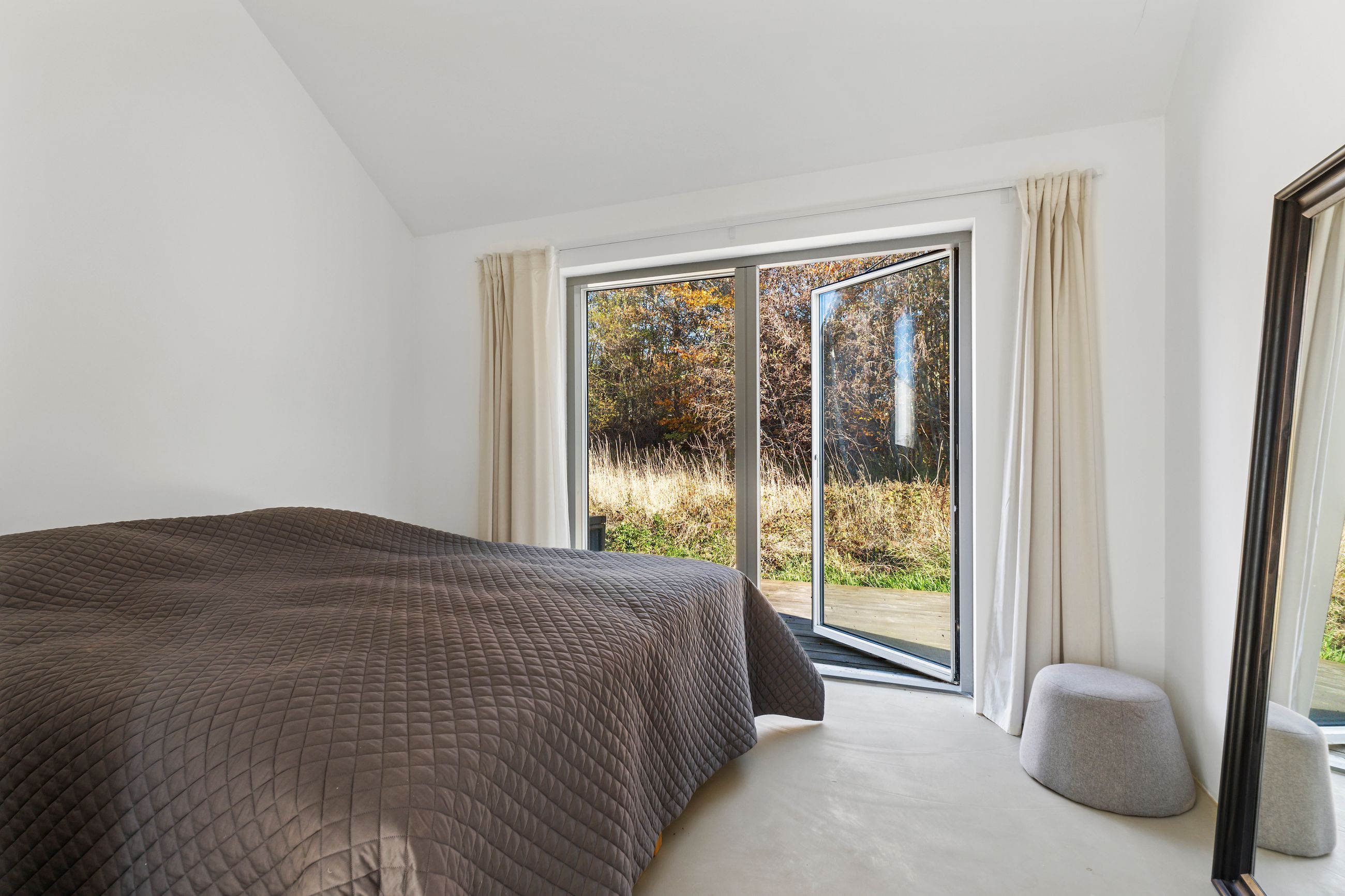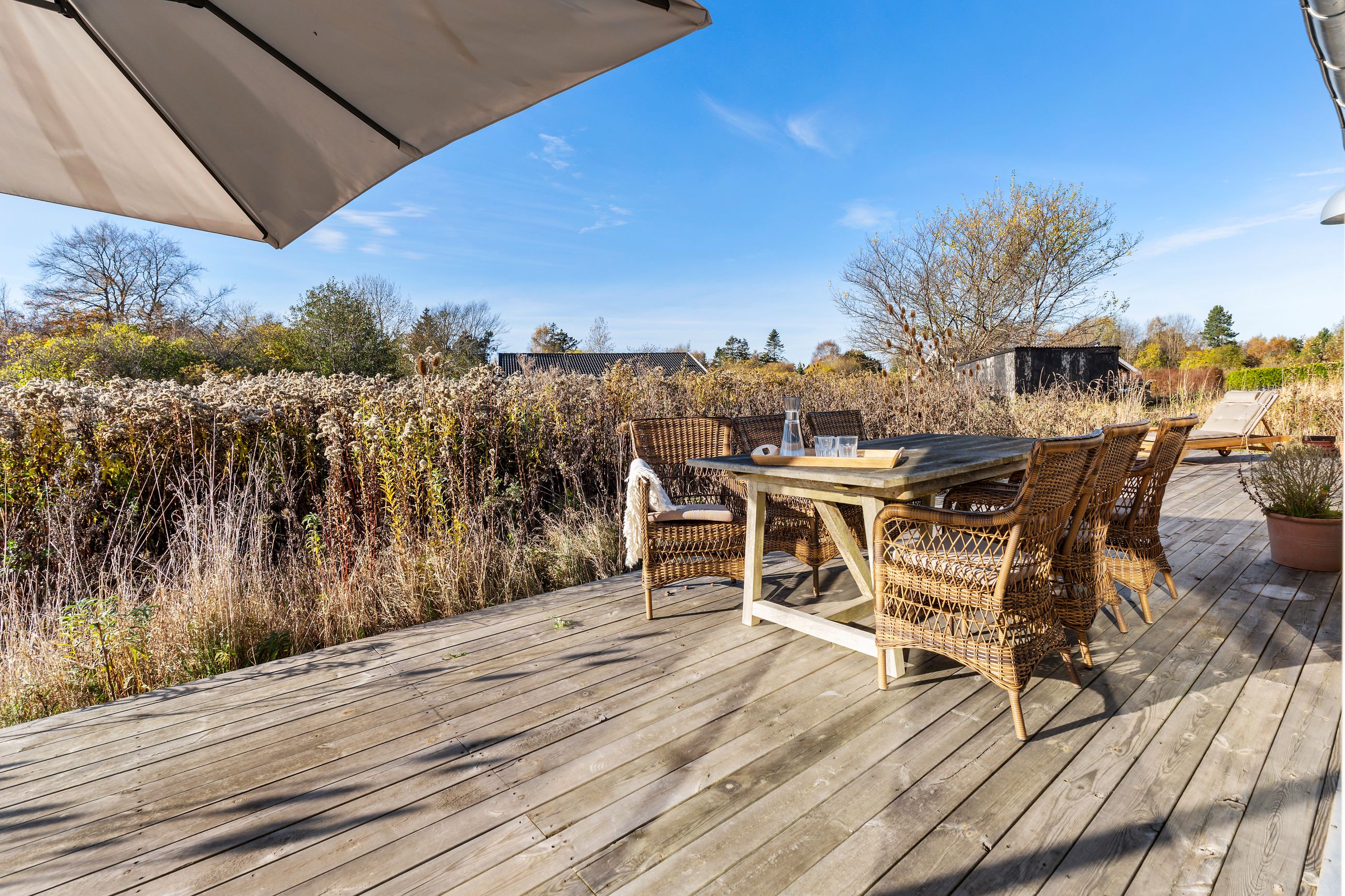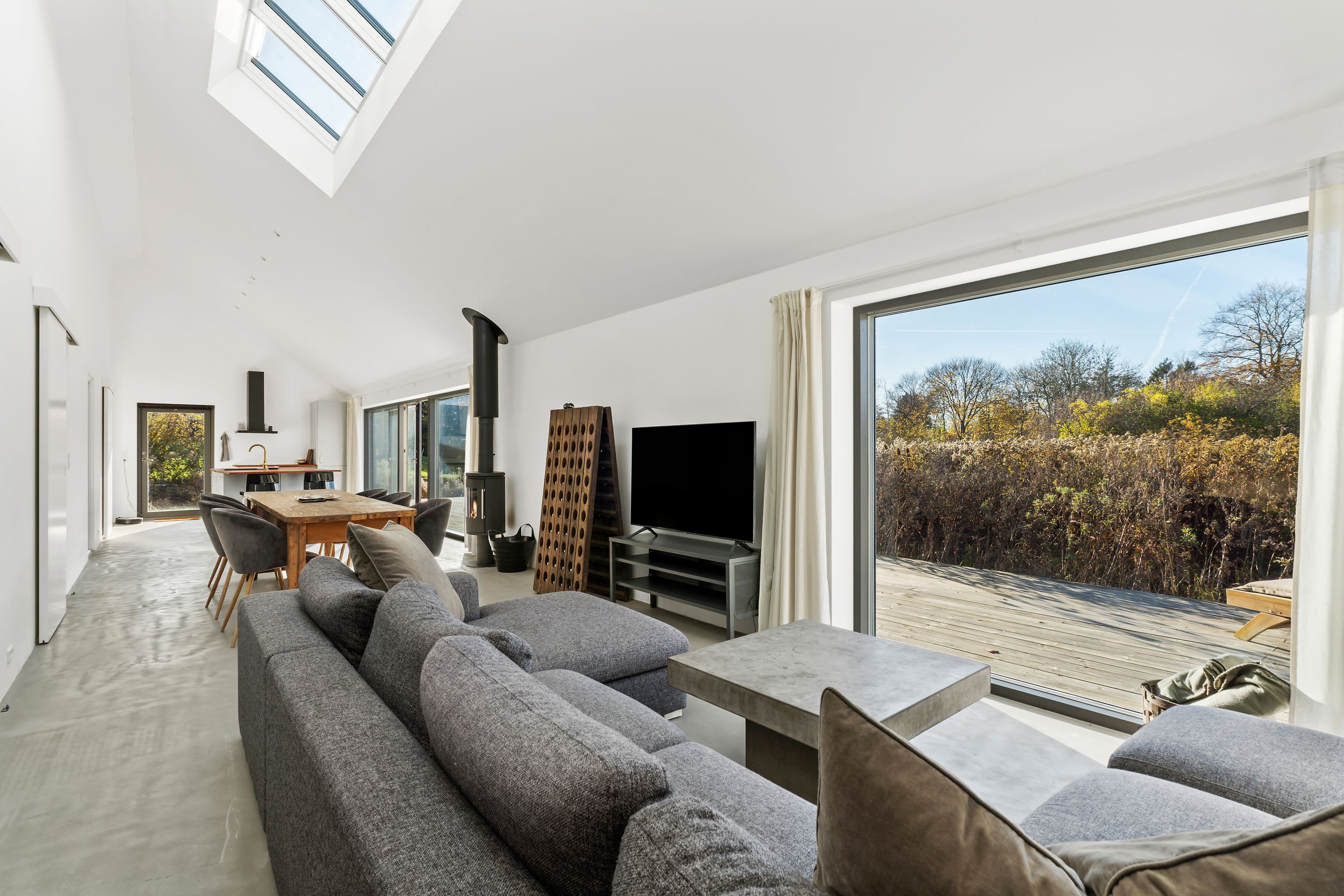 Sommerhuset på Trekroner Sidevej 6 ligger ikke langt fra Gudmindrup Strand. Huset er så nyt som fra 2022 og står på sin egen terrasseø, altså ikke meget vedligeholdelse her de næste mange år. Næh, bare hygge, sol på terrasser og maver og afslapning uden for mange dikkedarer som havearbejde. Haven er nemlig vild med vilje med dådyrøjne i græsset, sådan skal det være. Grunden er på 1.200 m2 med biodiversitet, som man siger, når insekterne summer som små motorer i naturens store maskineri. Med 105 m2 er her plads til familien med børn og venner på besøg.