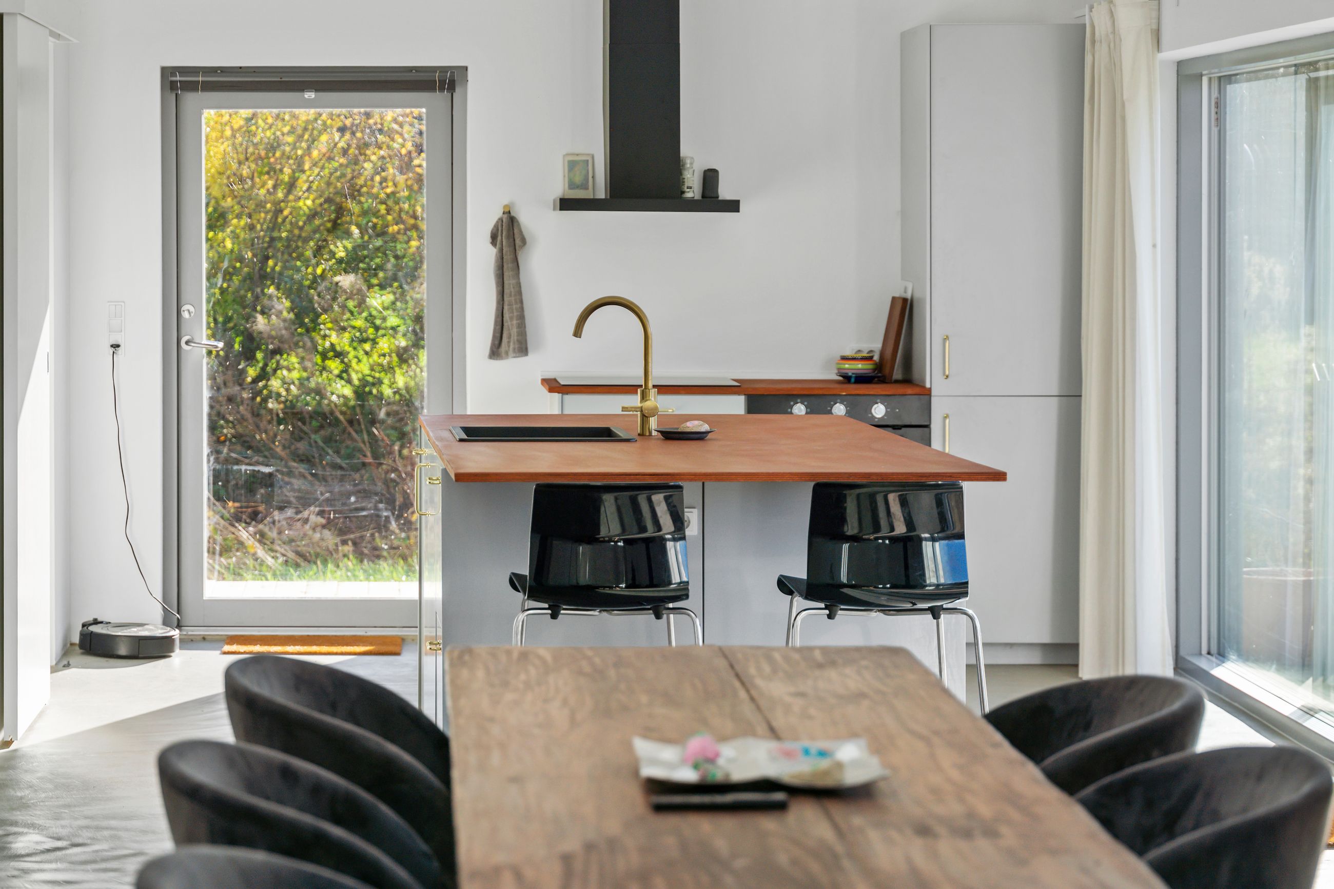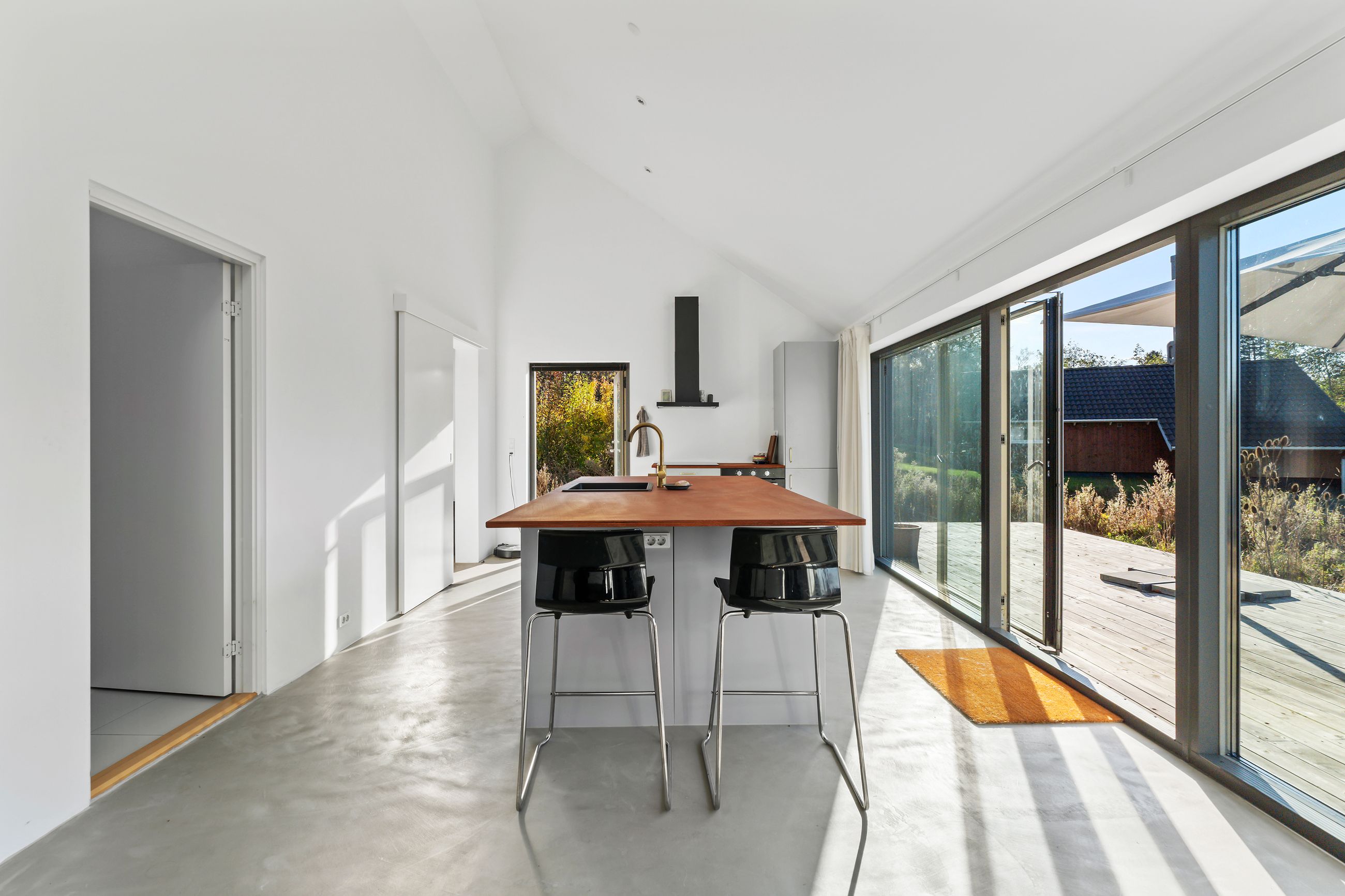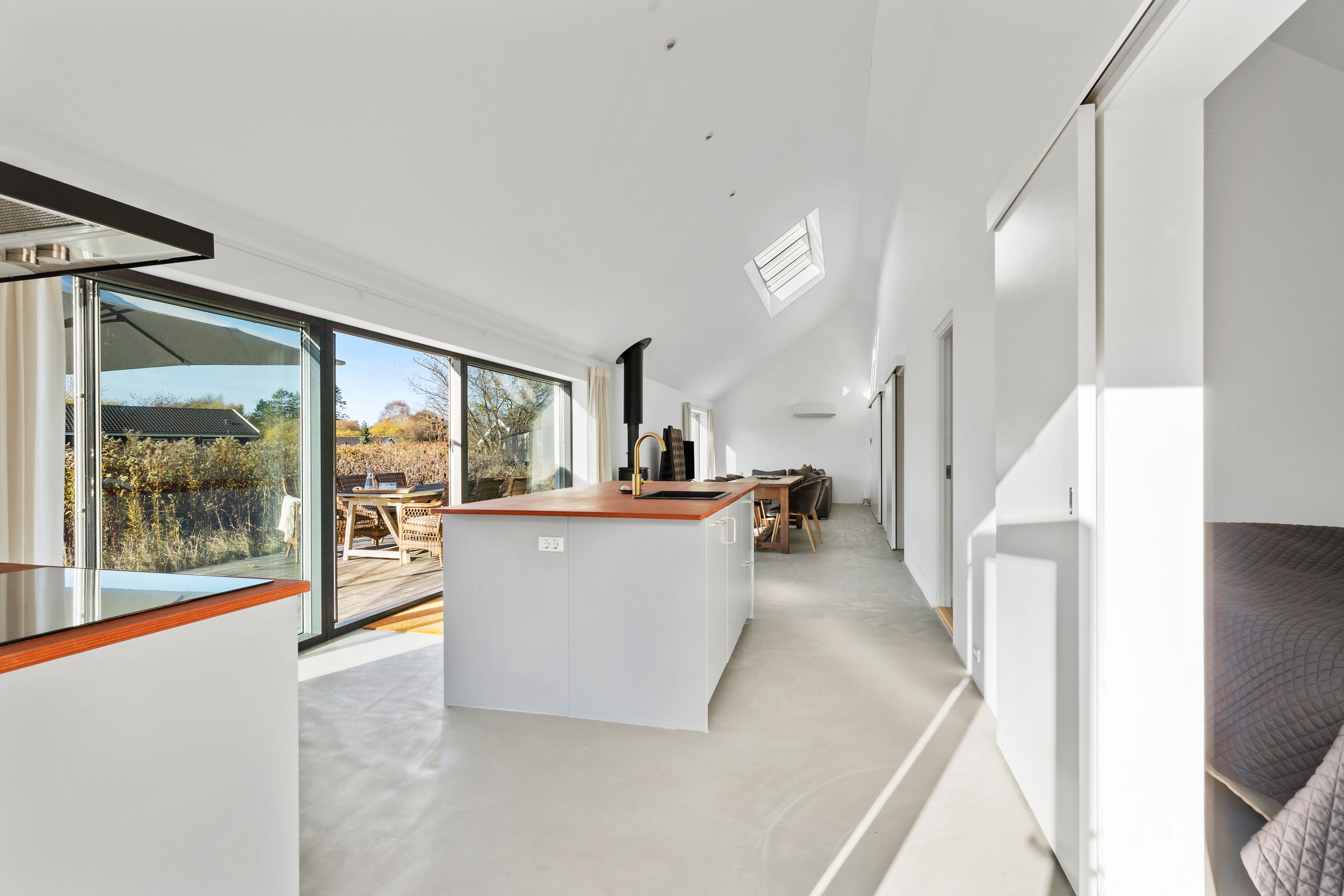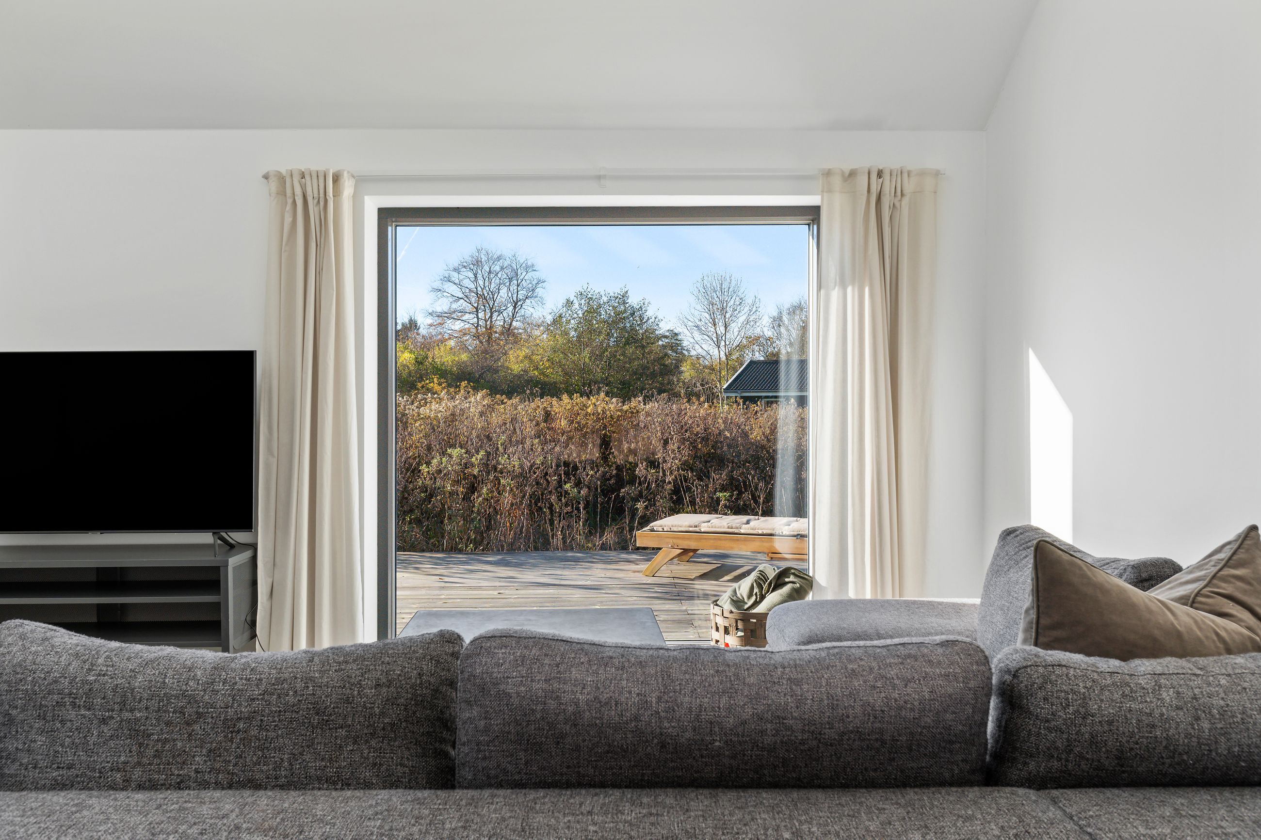 Sommerhuset på Trekroner Sidevej 6 ligger ikke langt fra Gudmindrup Strand. Huset er så nyt som fra 2022 og står på sin egen terrasseø, altså ikke meget vedligeholdelse her de næste mange år. Næh, bare hygge, sol på terrasser og maver og afslapning uden for mange dikkedarer som havearbejde. Haven er nemlig vild med vilje med dådyrøjne i græsset, sådan skal det være. Grunden er på 1.200 m2 med biodiversitet, som man siger, når insekterne summer som små motorer i naturens store maskineri. Med 105 m2 er her plads til familien med børn og venner på besøg.