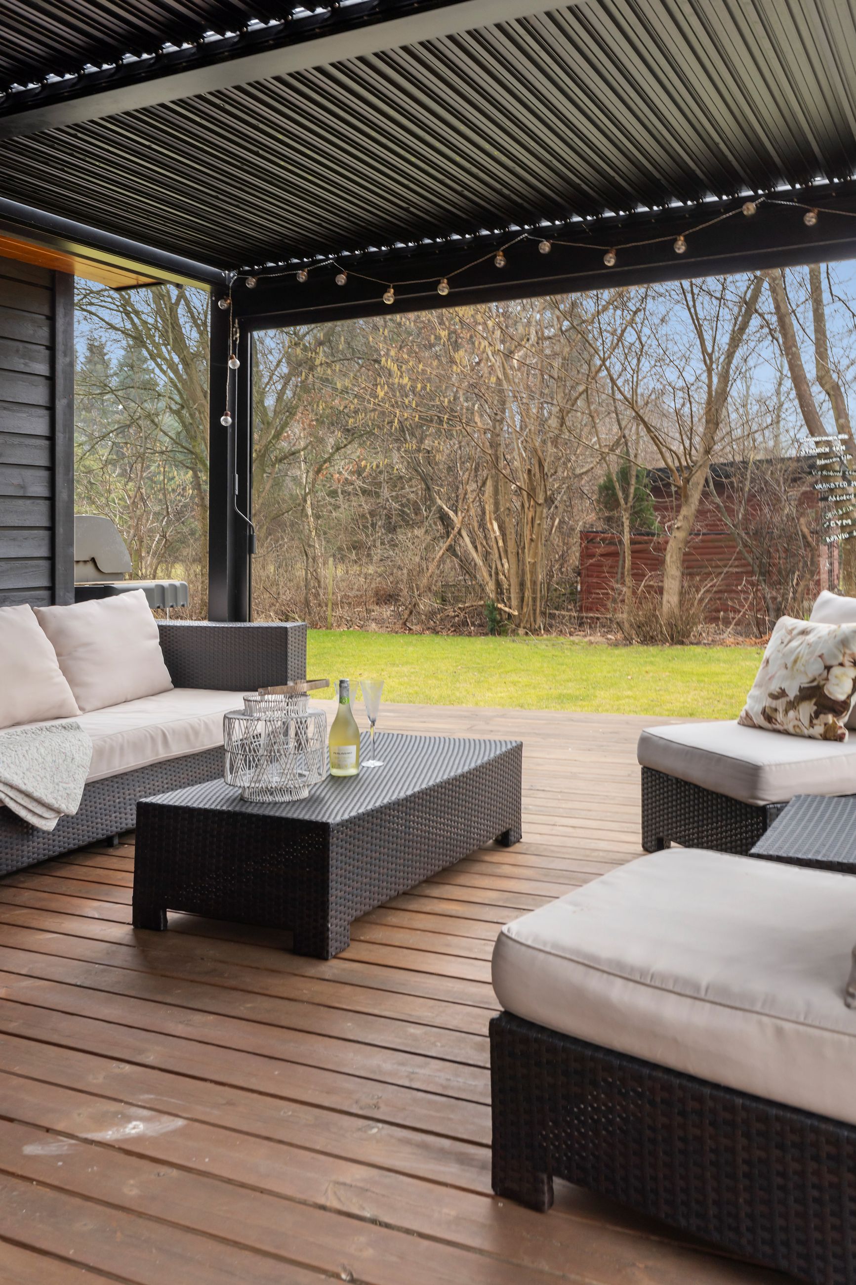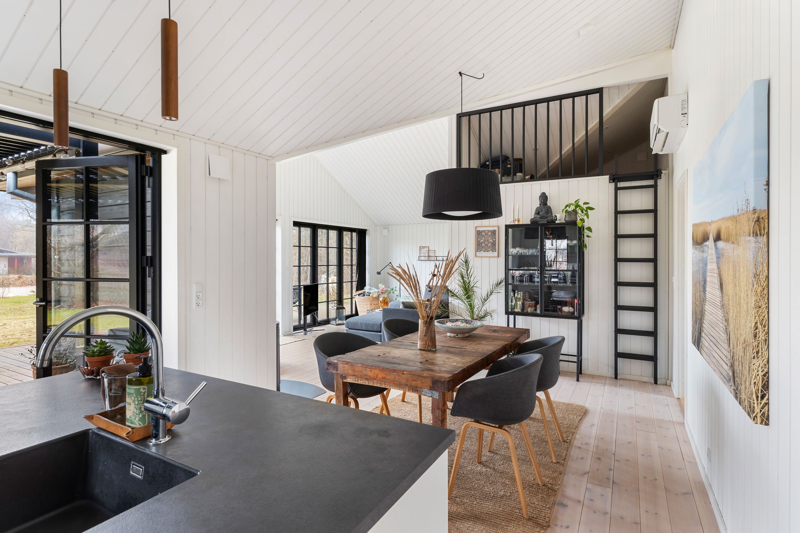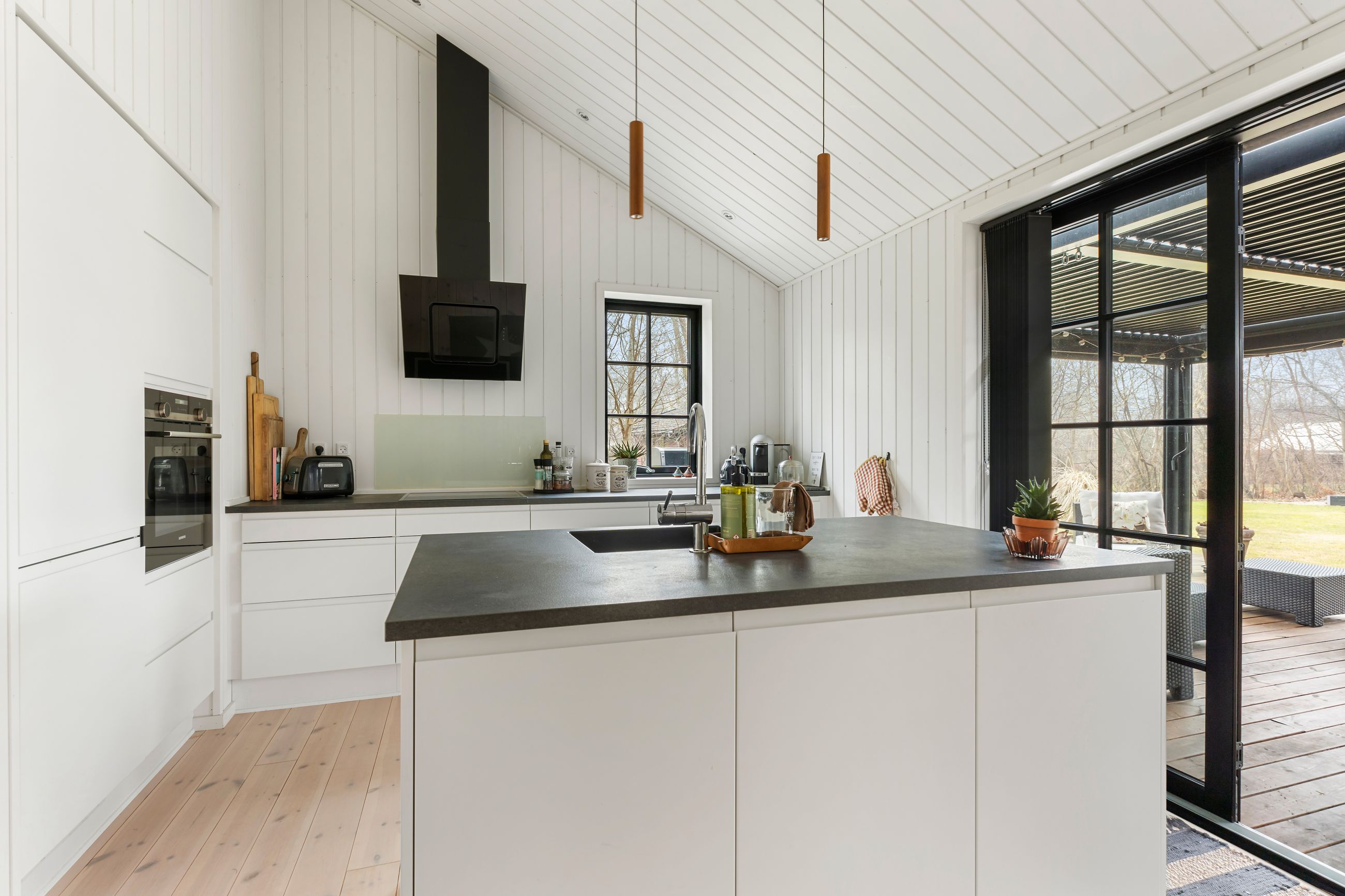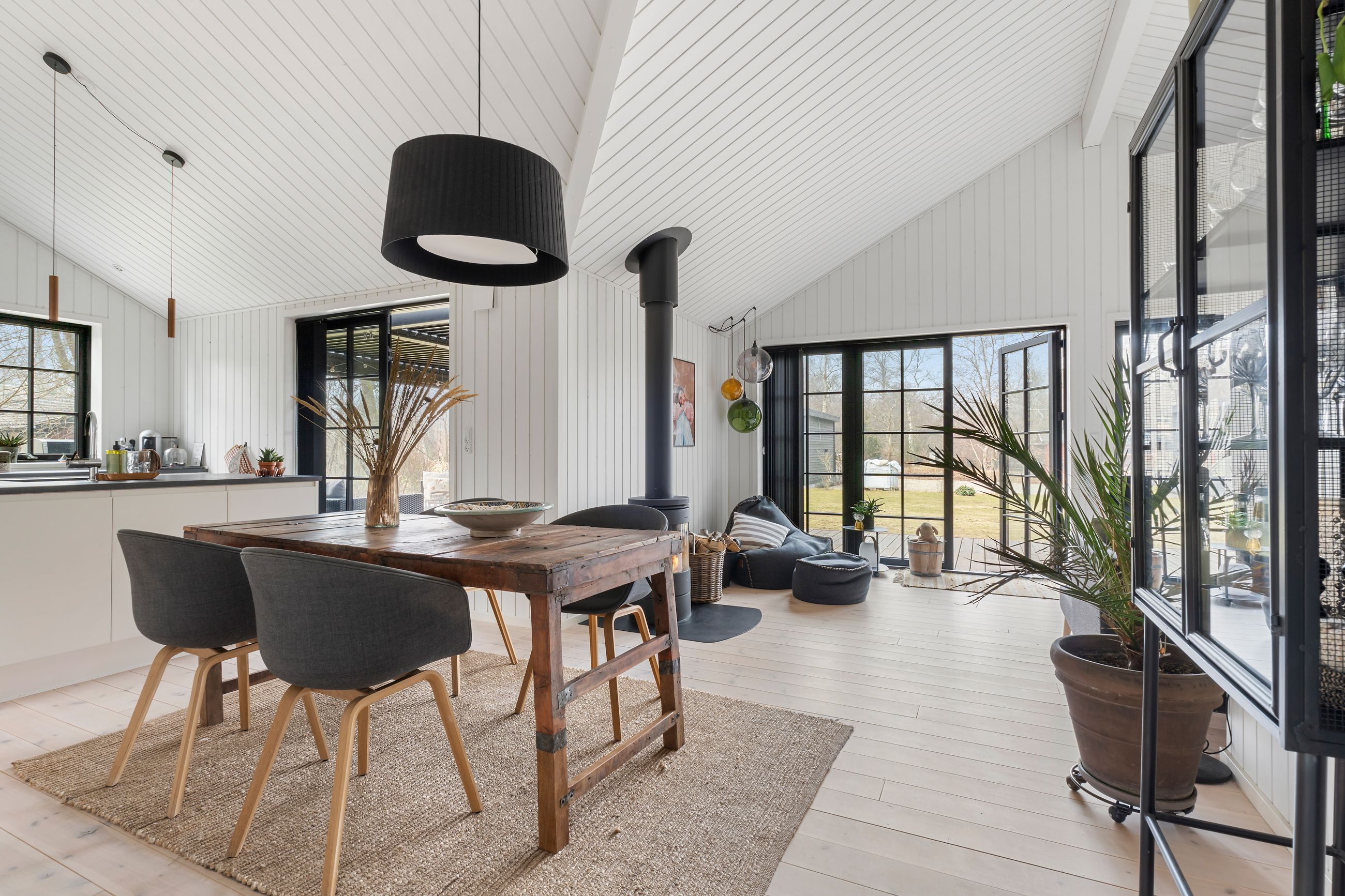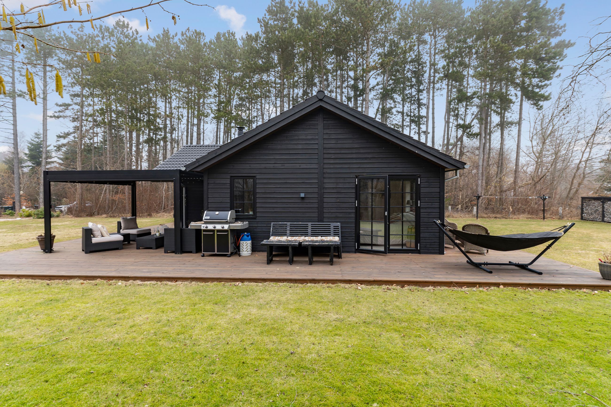 Det er et sommerhus på 92 m2 bygget på sin egen terrasseø så nyt som fra 2021. Her er alt hvad et sommerhushjerte kan ønske sig, ja, plads til børnefamilien, hems, lækkert køkken, lækre badeværelser, masser af luft og lys med store vinduer og loft til kip. Udendørs, overdækket lounge, udenbruser, masser af sol på terrassen. Grunden er på 1.638 m2. Kom an, her er det hele. Ikke meget vedligeholdelse her de næste mange år.