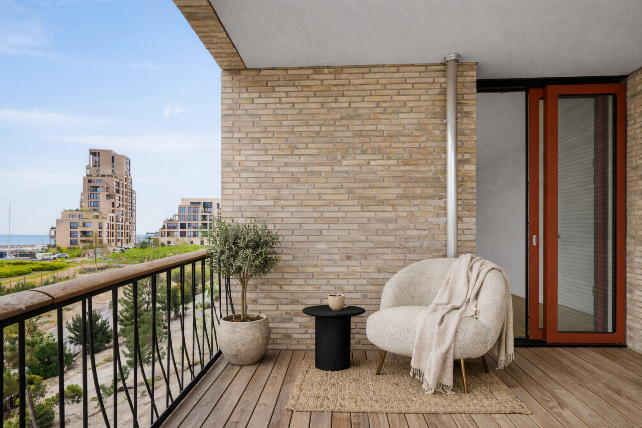 Endnu et kysthus har taget sin form på den sydlige spids af indsejlingen til Tuborg Havn og Svanemøllebugten i Hellerup. Ja, midt i et kuperet, vildt englandskab lige ned til Øresund adresseret til liebhavere og feinschmeckere. Bo inde og ude på toppen i en penthouse med den vildeste udsigt. Bo i stuetagen med forskudt plan og et par trin ned til Øresund. Vælg din lejlighed i Tuborg Strandeng og få det tætteste liv på vandet med vild natur og biodiversitet i englandskabet. Nyd livet i lyse, åbne omgivelser med to til fire solfyldte tagterrasser eller balkoner. Her får man en udsigt over eng og sund, man ikke finder andre steder.