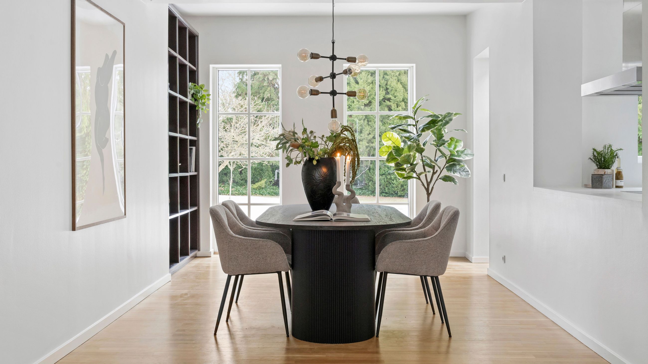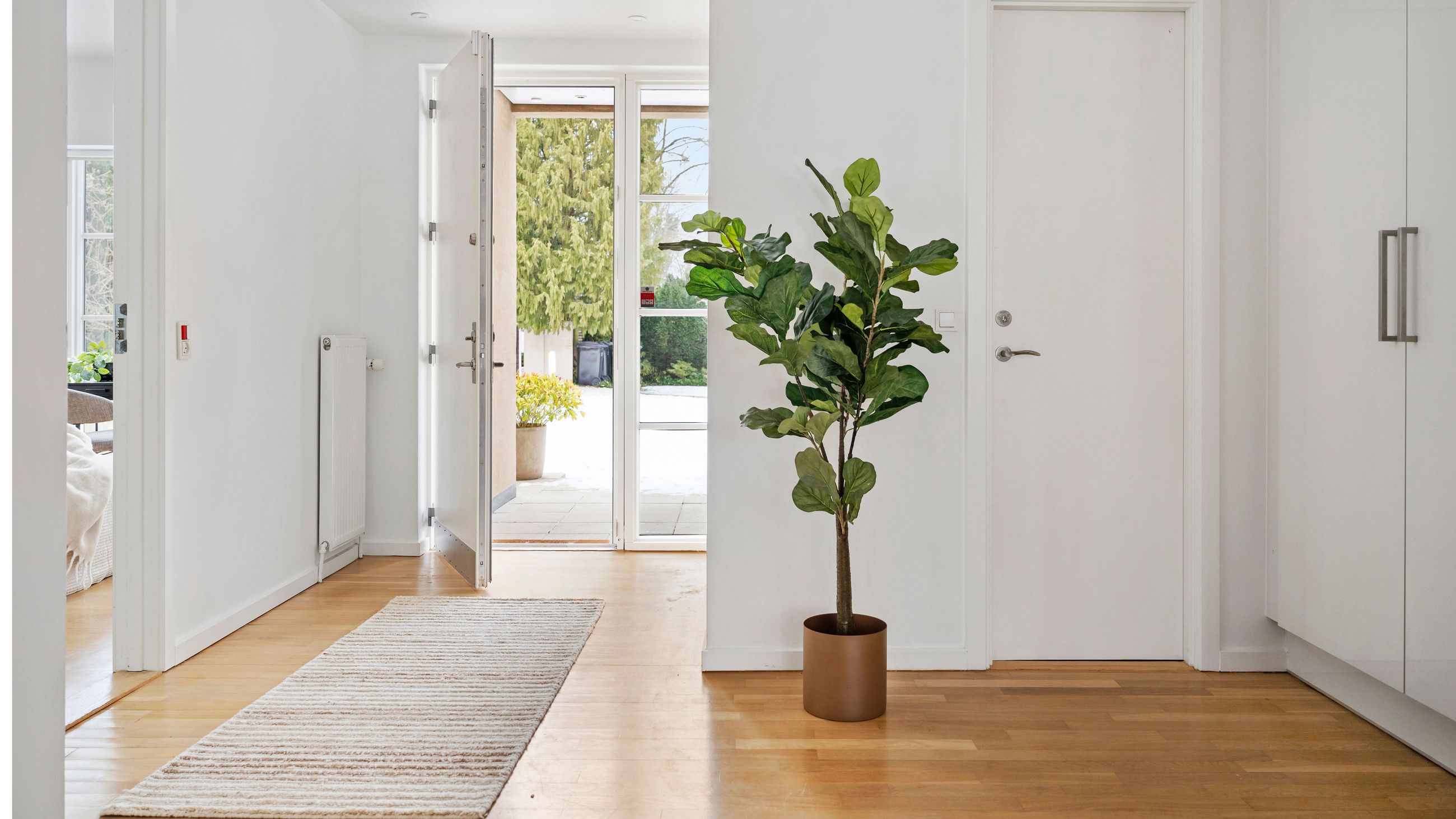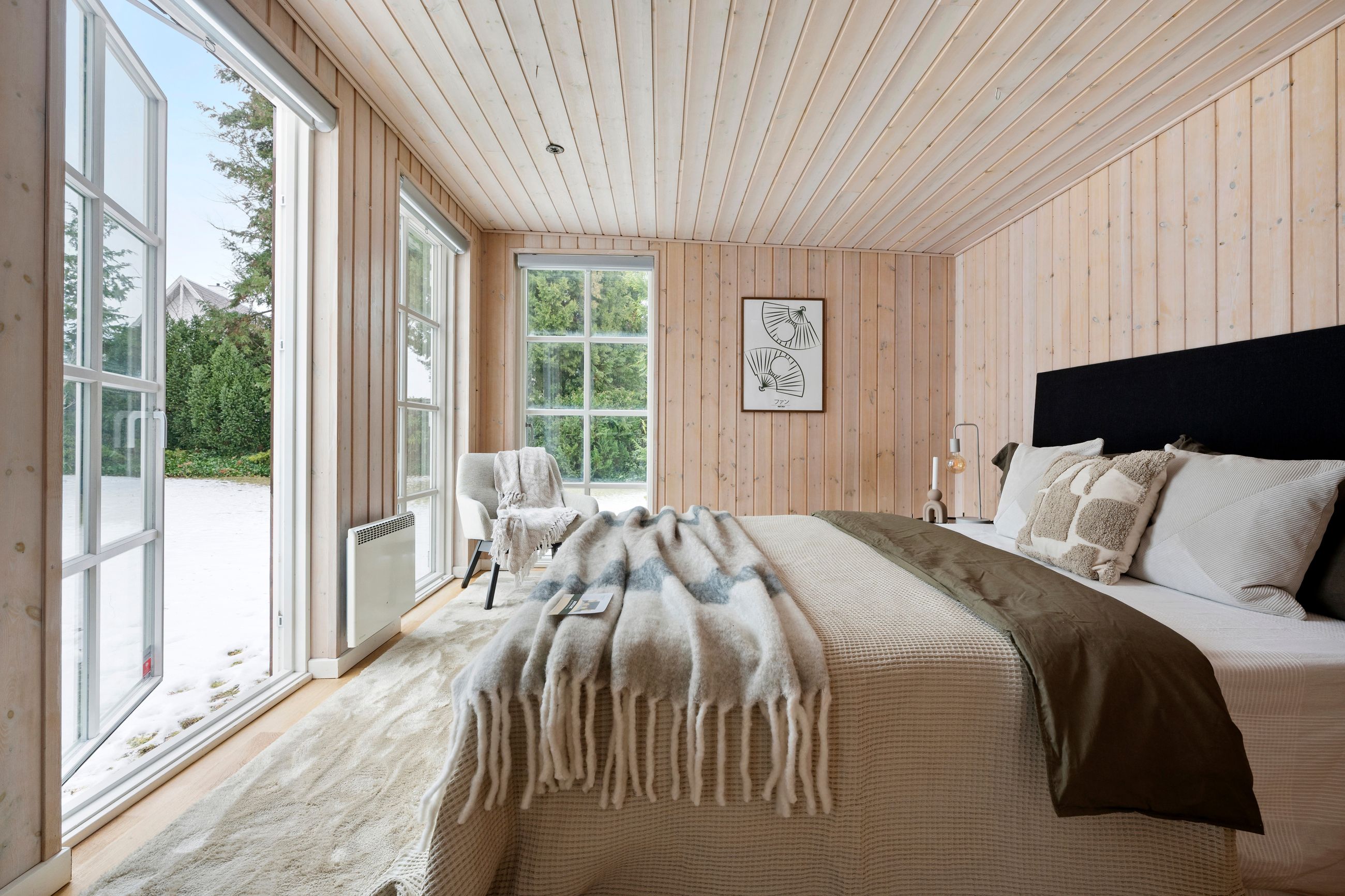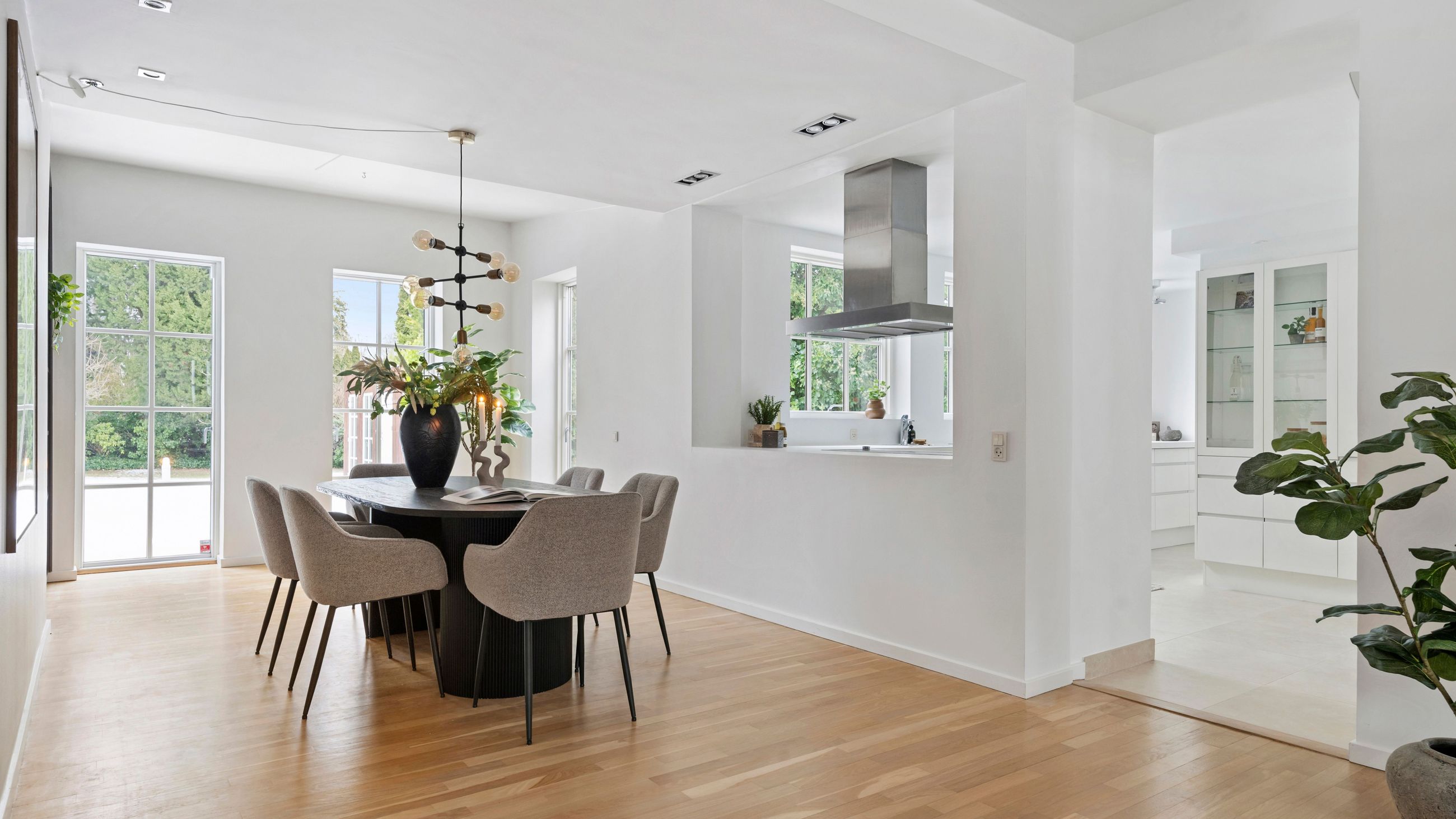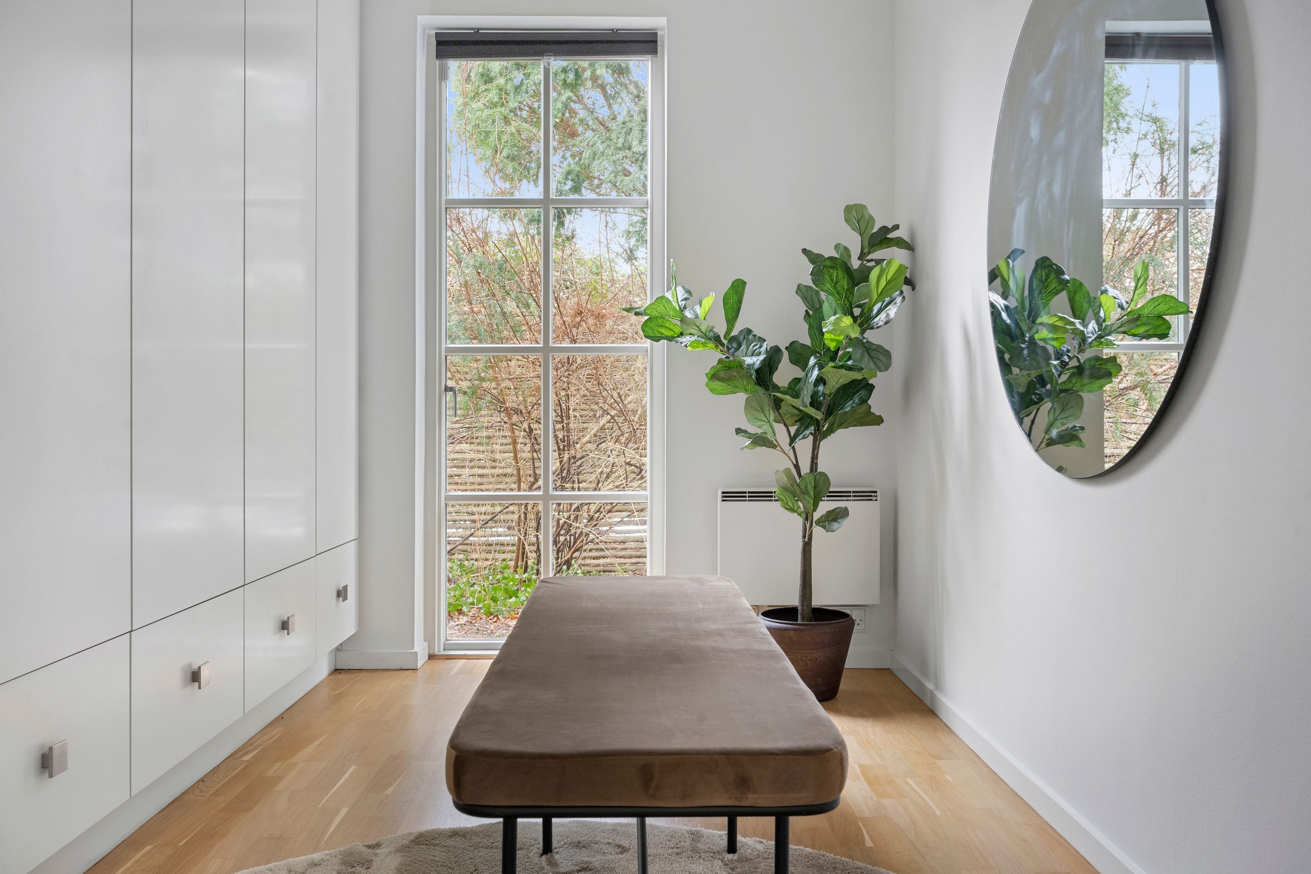 Man får næsten lyst til at sige, at huset på Vedbæk Strandvej er en skulptur med tagrender. Det er godt nok bygget i 1958 som et klassisk étplans hus, men her hører fortiden også op. Det fik sin renaissance, sin genfødsel en gang i 0’erne, og tænk, her fik huset 18 havedøre med sprossevinduer, en pyramide og et anneks til umulige teenagere eller au pair. Så her er der masser af lys, masser af plads, masser af charme med loft til kip under pyramiden. Ja, den korte og hurtige version er, at det er et toplækkert hus på 213 m2 med store rum lige til at flytte ind i.