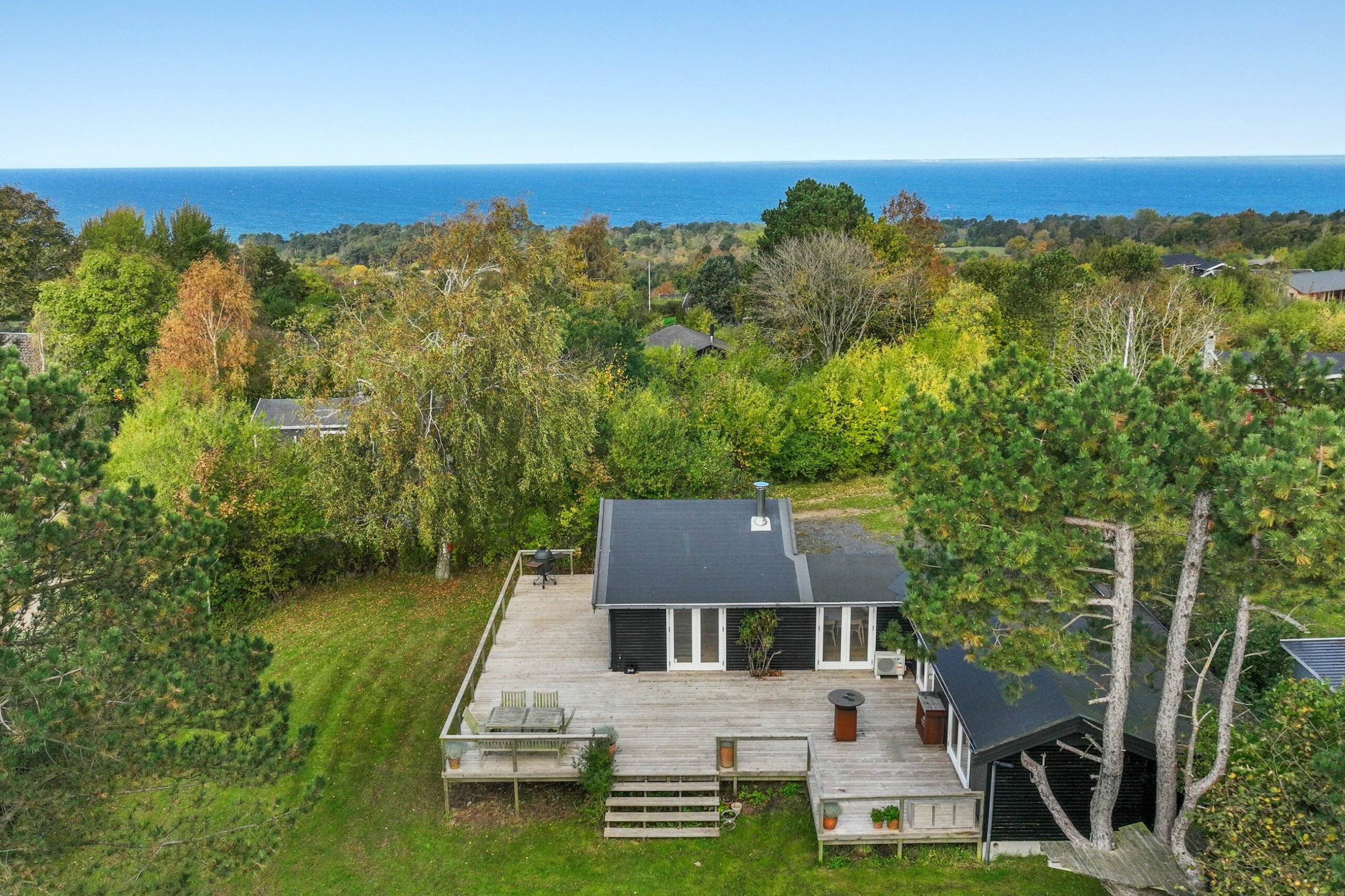 Sommerhuset på Vidarshøj ligger højt og tilbage i bakkerne, og har derfor udsigten over de fredede bakker til Ordrup Næs mod vest og det lange, lange kig ind i landet mod sydøst. Storslået er det at have udsigt hele vejen rundt om sig selv. Her ejer man udsigten sammen med guderne og himlens fugle, det bliver ikke meget bedre. Huset er fra 1970, men er ombygget til det klassiske, sorte træhussommerhus, det er i dag. Det er på 91 m2 (bebygget areal) med yderligere anneks på 12 m2. Der er læ på den store terrasse, og når påskefrokosten står på bordet, ja, så er sommeren i gang. Grunden er på 1.660 m2 og ligger op til fredede marker, her står bondemandens får og lam og drøvtygger græs med sørgmodige øjne hele sommeren. Vidarshøj er en grusvej, én af de knappenålsstille på toppen af istidslandskabet i Odsherred.