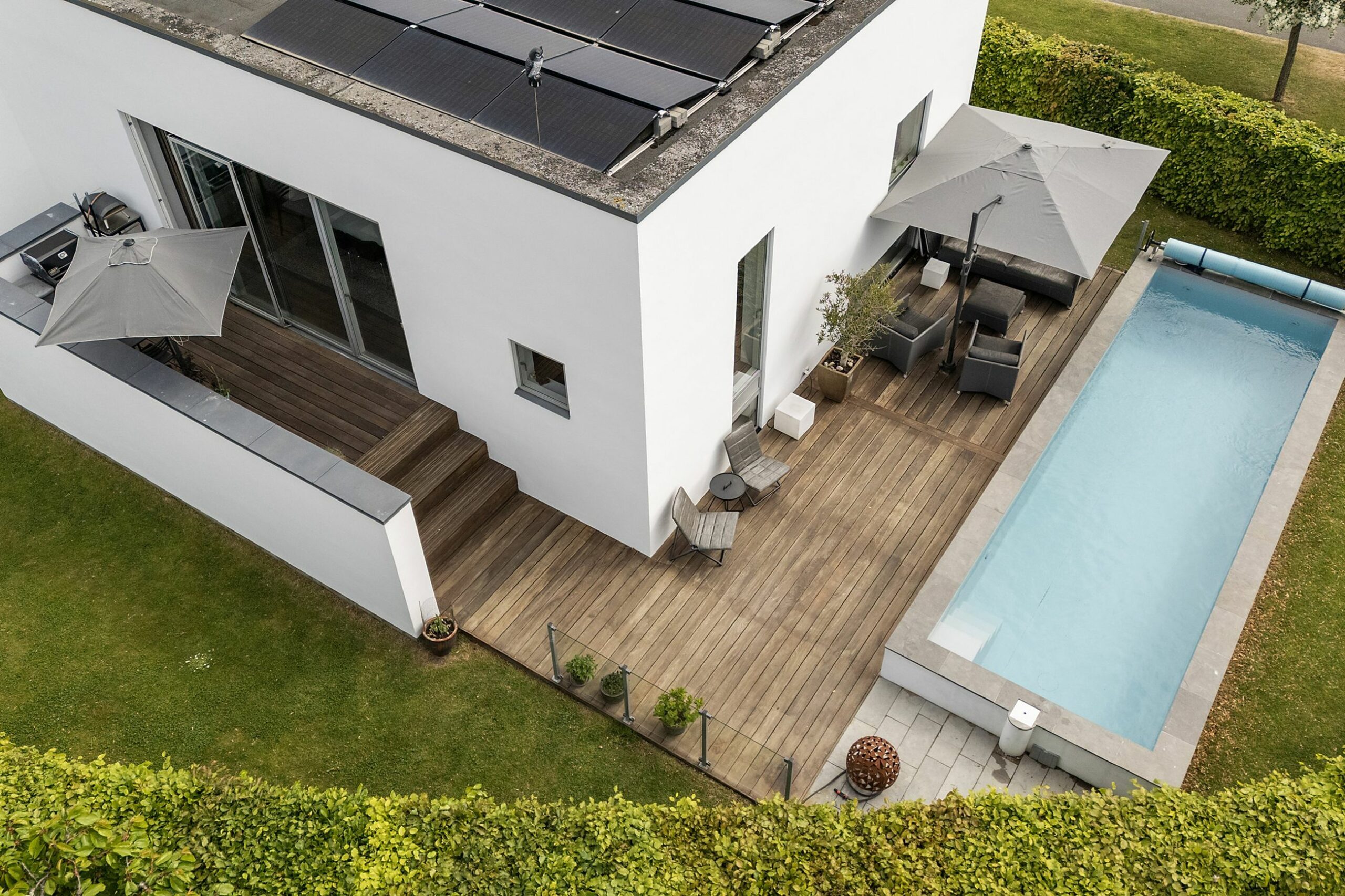 Udearealerne er anlagt med fokus på privatliv og funktionalitet. En tæt og velanlagt beplantning skærmer haven og pool området effektivt mod indkig, og skaber en rolig og privat ramme omkring ejendommen.